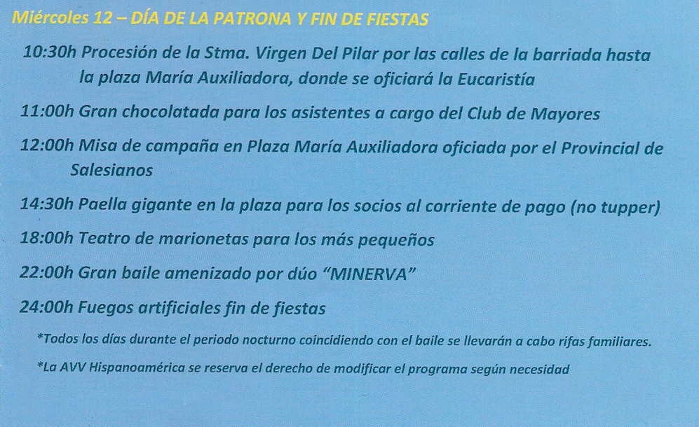 Hoy es el día grande, con procesión de estreno, misa de campaña, arroz popular, teaatro de marionetas, baile con Dúo Minerva y castillo de fuegos de artificio para la teórica clausura, pues, como hemos indicado antes, el jueves se recuperará la velada de trovos.