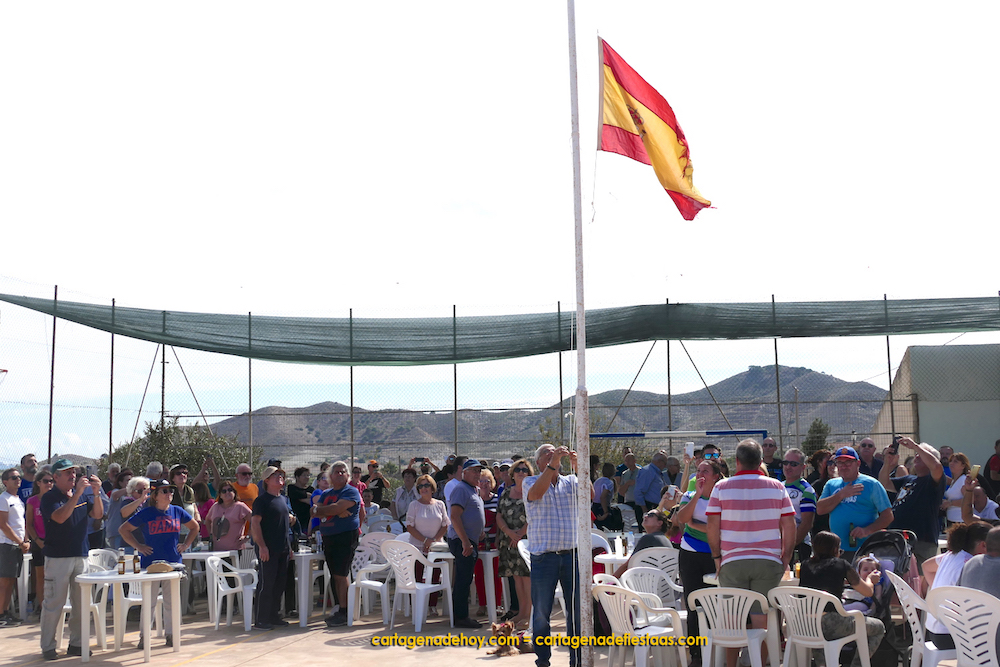 La jornada organizada por la asociación de vecinos contó con doscientos participantes en la ruta por el sendero de Santa Bárbara y un posterior almuerzo compartido, con arroz para trescientas bocas y otras viandas del secano cartagenero, en la pista polideportiva, donde tuvo lugar el izado de la bandera de España, que los presentes, pues en pie, enriquecieron con sus aplausos. GALERÍA DE FOTOS (pinchar aquí)