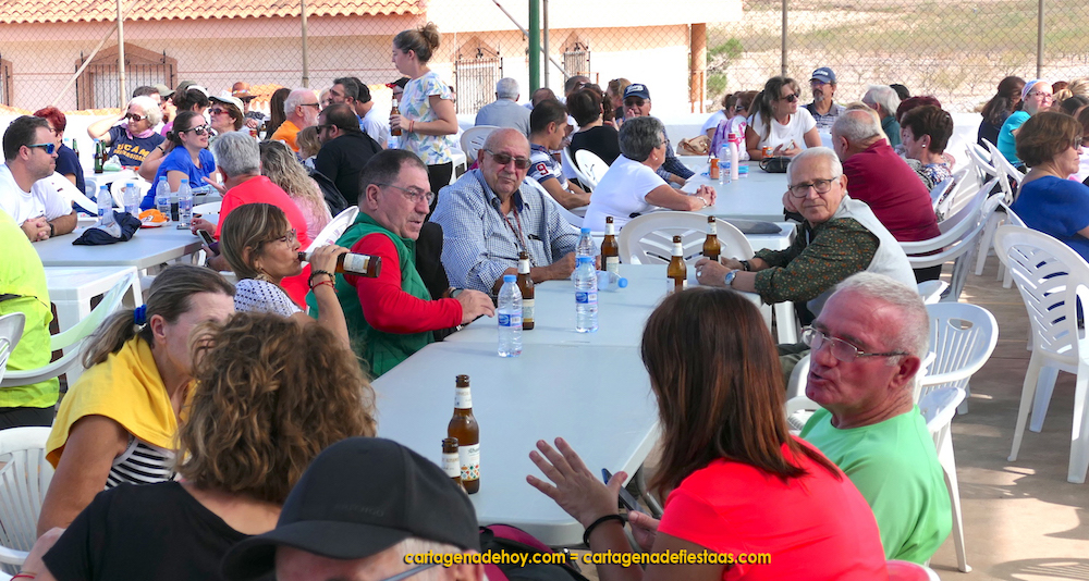 Y después... ¡a comer!, pero en la compañía de todos los que decidieron compartir esta amena jornada. Primero hubo productos típidos del secano cartagenero ofrecidos por los vecinos y después, un arroz gigante para trescientas personas, por 2,50 euros para sufragar gastos. Y así comenzó la tarde, en la que sorteos y la música de Dúo Gala potenciaron el buen ambiente de una jornada organizada por la asociación de vecinos con la colaboración de la junta vecinal municipal y el Ayuntamiento de Cartagena.