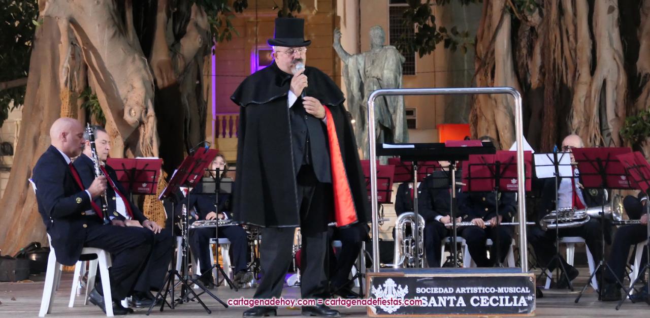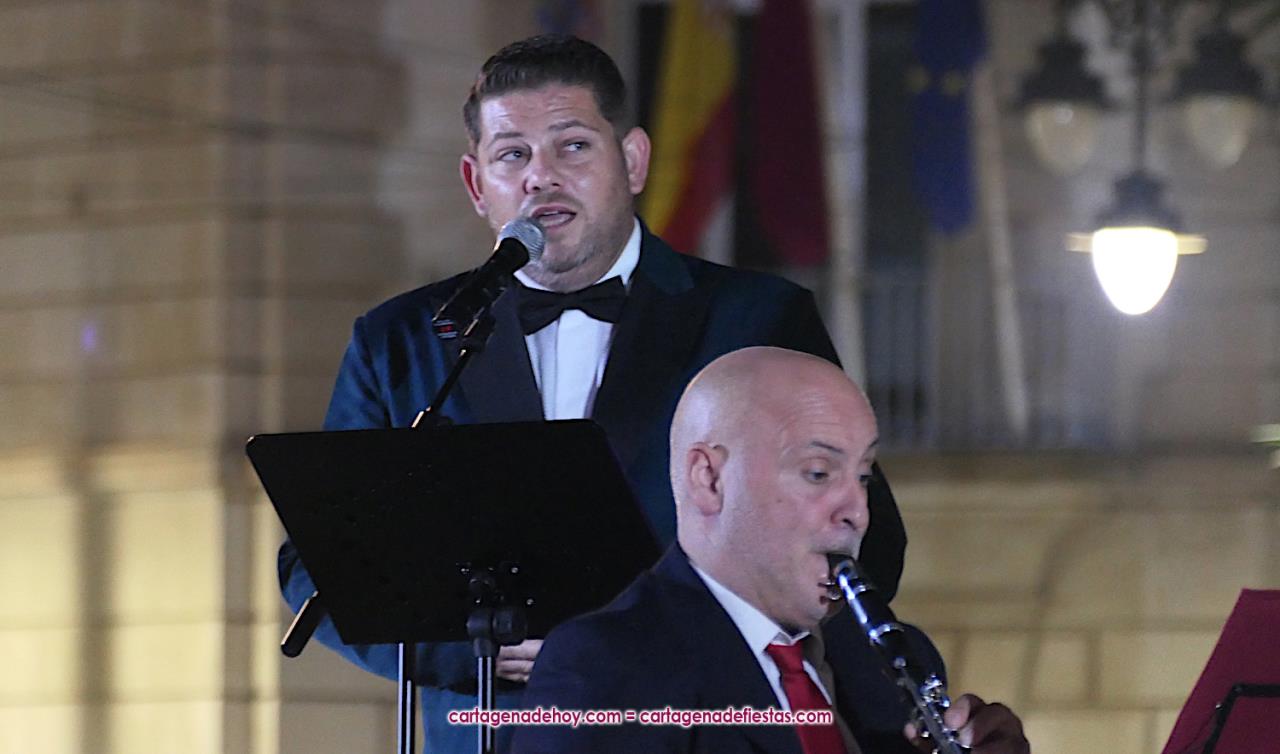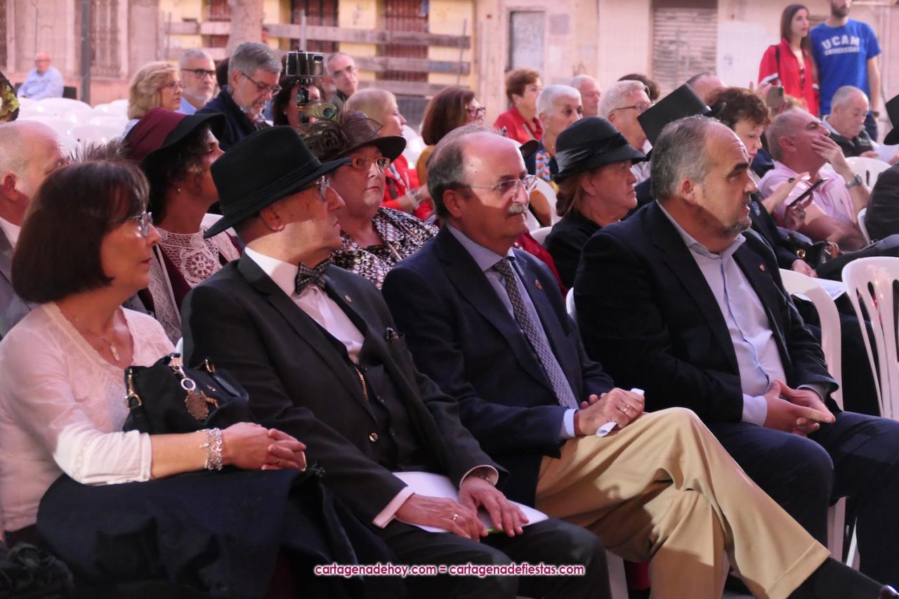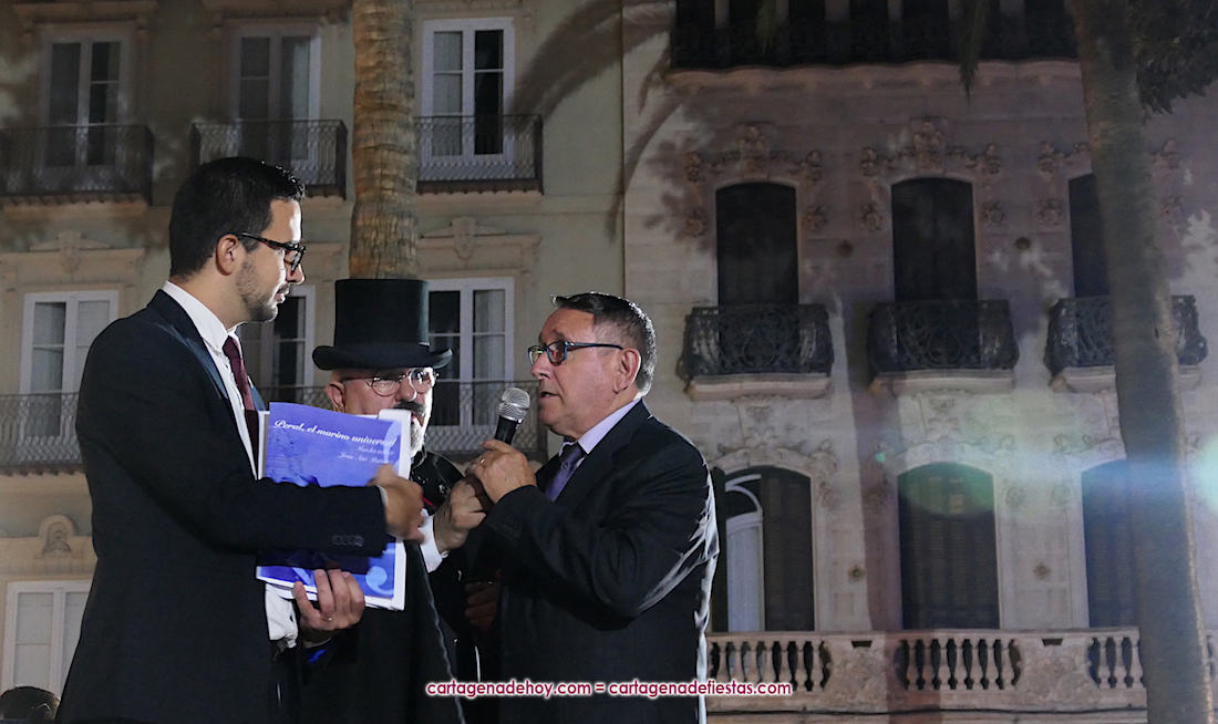 Tomás Martínez Pagán, ‘Proclamador de 2021’, presentó a su sucesor, Pedro Negroles’, quien resaltó en su oratoria (ágil y concisa) que el modernismo fue un movimiento cautivado por la cultura, la música y la belleza, que resultó un punto de inflexión en la evolución de Cartagena y que en esta ciudad hay Semana Santa en primavera, Carthagineses y Romanos a principios de otoño, carnaval en invierno “y modernismo todo el año”, en referencia los numerosos edificios de entonces que existen en el casco antiguo, como los que anoche estaban en un lateral de la plaza.
