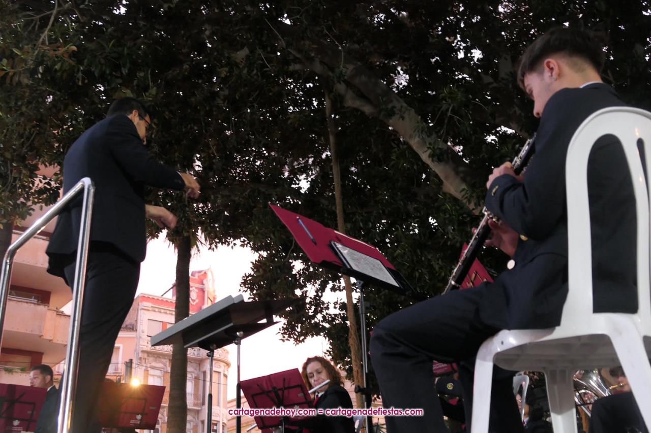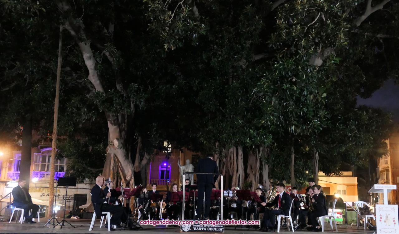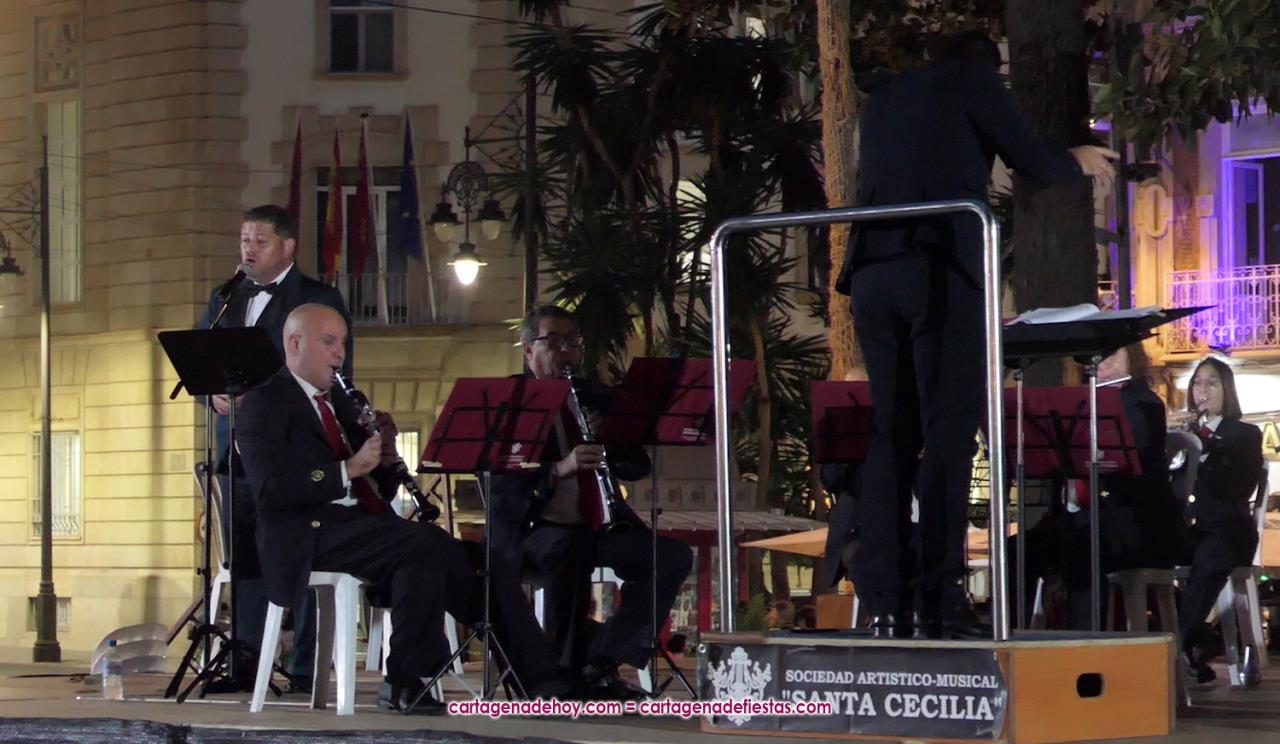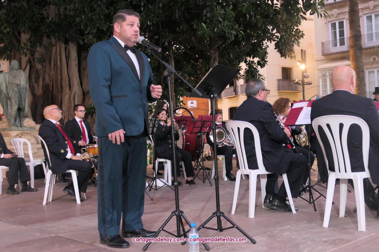 Tomás Martínez Pagán, ‘Proclamador de 2021’, presentó a su sucesor, Pedro Negroles’, quien resaltó en su oratoria (ágil y concisa) que el modernismo fue un movimiento cautivado por la cultura, la música y la belleza, que resultó un punto de inflexión en la evolución de Cartagena y que en esta ciudad hay Semana Santa en primavera, Carthagineses y Romanos a principios de otoño, carnaval en invierno “y modernismo todo el año”, en referencia los numerosos edificios de entonces que existen en el casco antiguo, como los que anoche estaban en un lateral de la plaza.