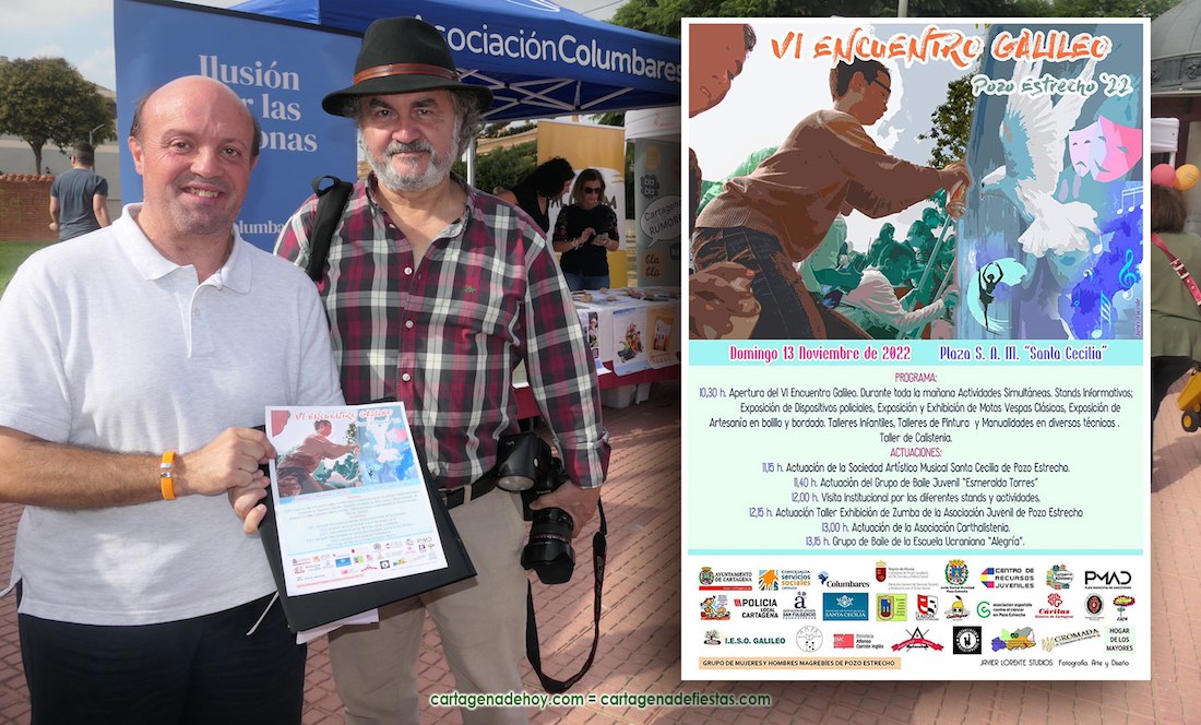 Antonio Almagro ha sido el coordinador de la feria y a quien se observa en la fotografía ubicada sobre estas líneas junto al artista galileo Javier Lorente, autor de la imagen del cartel de esta sexta edición. La jornada también ha contado, entre sus visitantes, con la presencia de la vicealcaldesa de Cartagena, Ana Belén Castejón, y del teniente de alcalde, Manuel Padín.