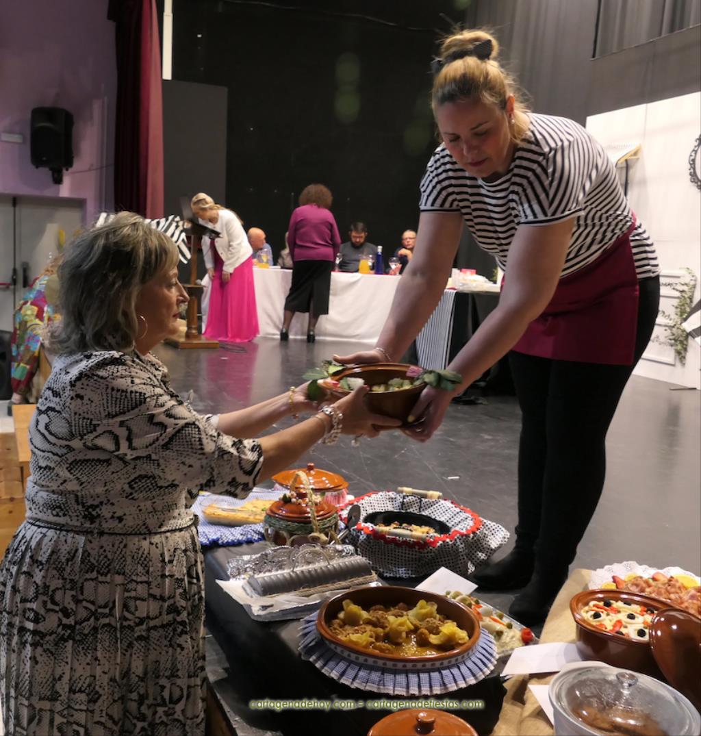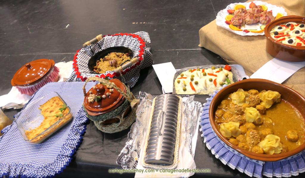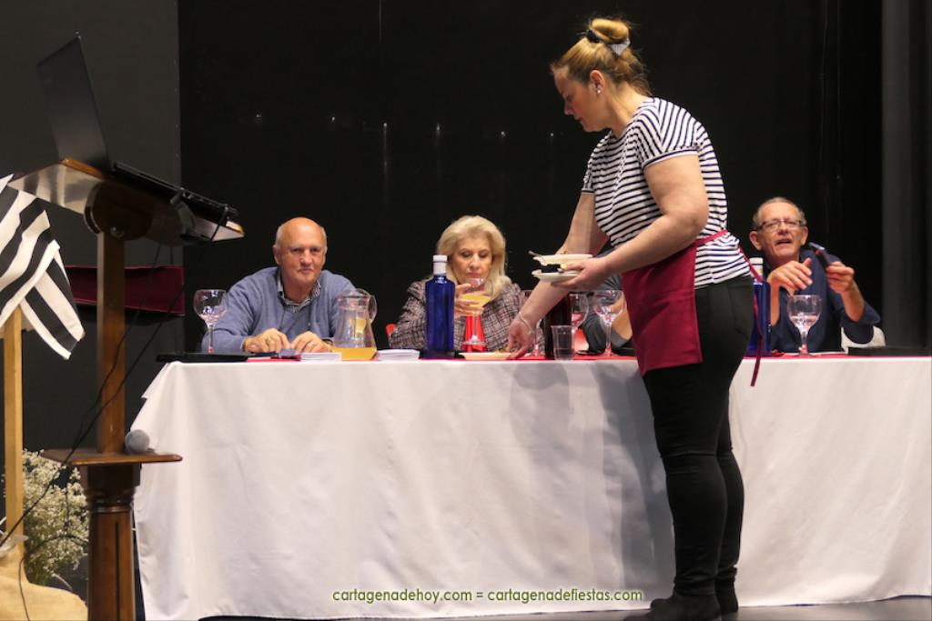Es, posiblemente, el concurso gastronómico más antiguo de la Región de Murcia, y si no lo es, tiene que ser de lo más añejos. Treinta y seis ediciones han dejado mucho poso y de ahí que su celebración sea todo un acontecimiento que va más allá de la cocina, como bien queda reflejado al entrar al salón de actos del centro cívico de La Palma y contemplar un magnífico decorado (cambia cada año) en el escenario, lugar donde María García García y Maite Ramos son las maestras de ceremonia y hay una mesa central donde un equipo de cuatro mújeres dispensa los manjares a probar a un jurado integrado por ocho personas, cuatro encargadas de valorar los platos salados y cuatro con la misión de puntuar los dulces. Todo, bien estructurado.