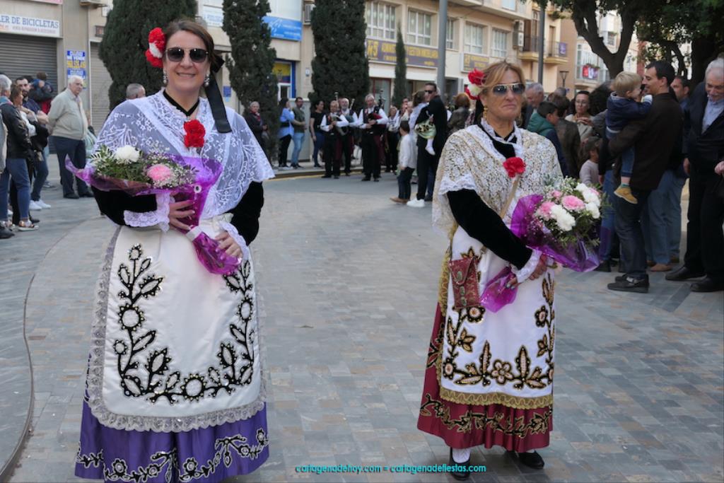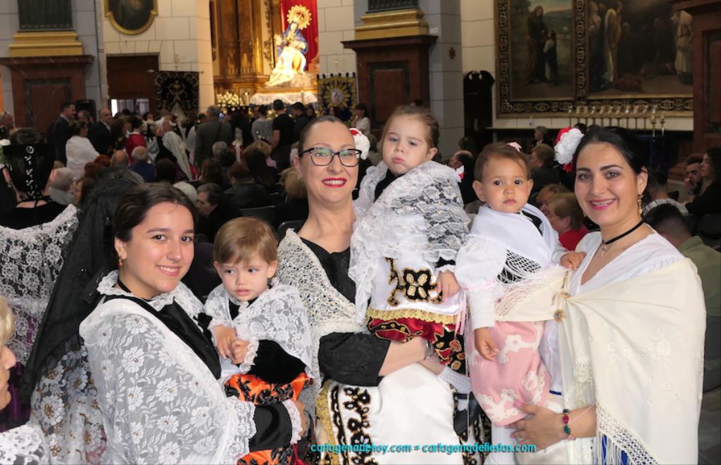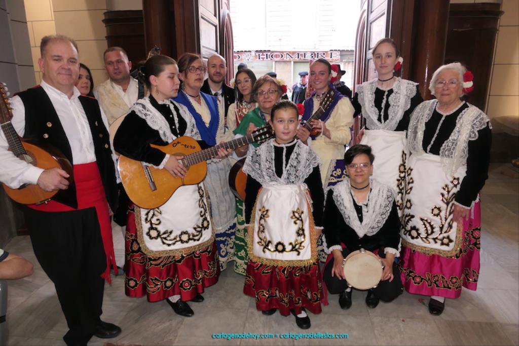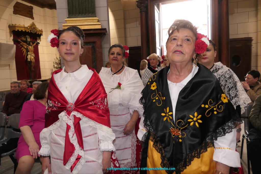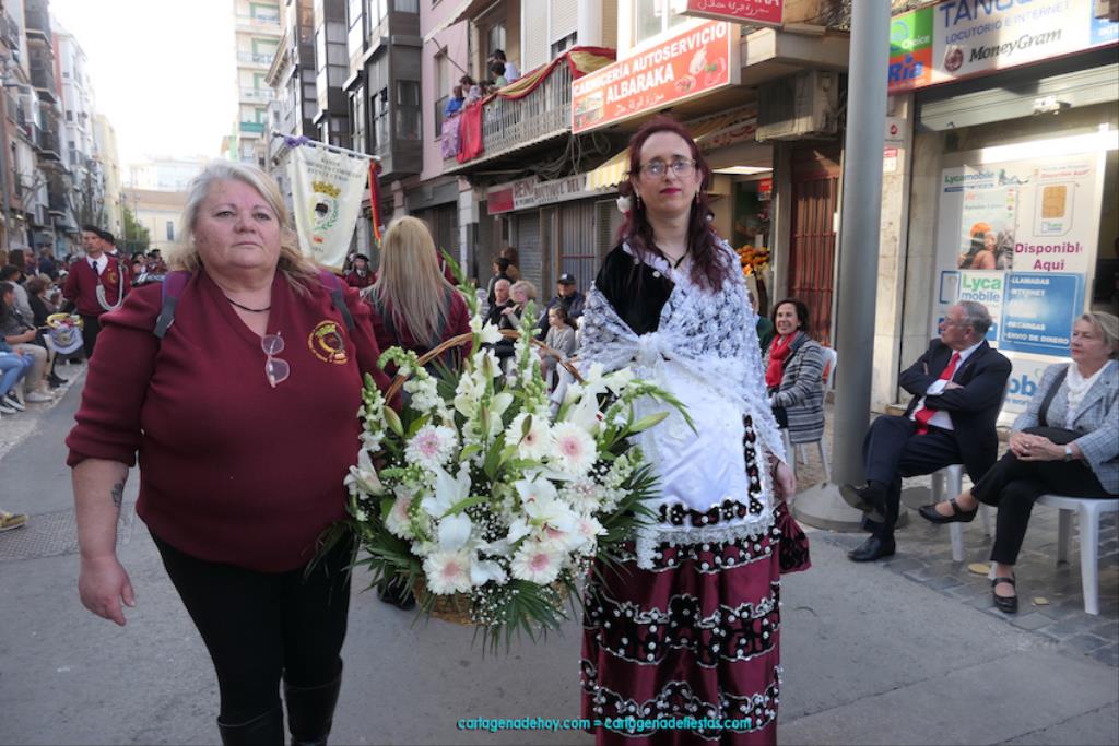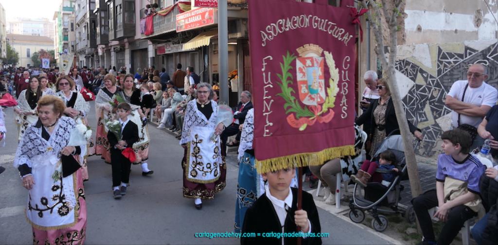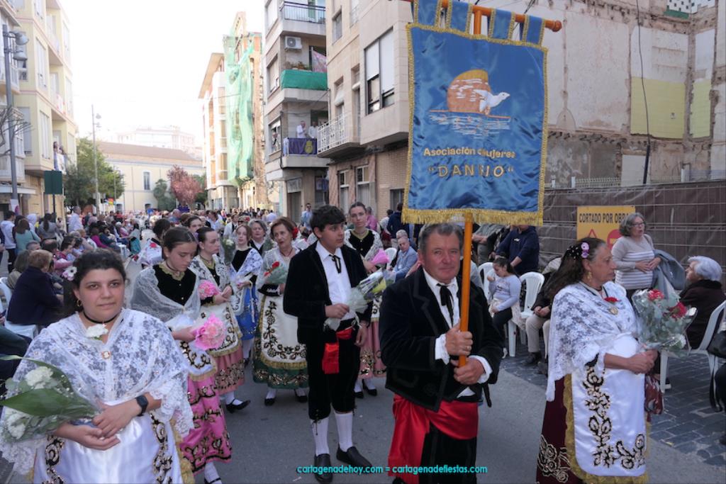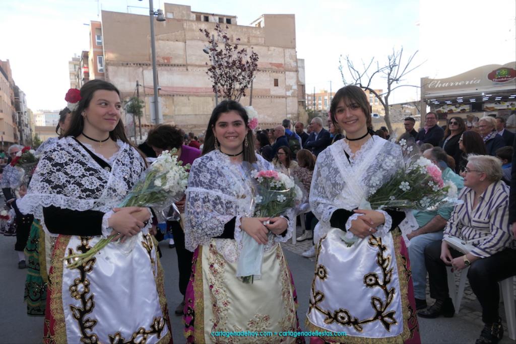 Isabel es un ejemplo de la devoción que existe hacia la patrona y a buen seguro que habrá más casos similares. Así, por ejemplo, Ana de Haro, presidenta vecinal del Ensanche-Almarjal, supera las cuatro décadas de ofrendas. En la lado opuesto hemos podido ver a muchos bebés con escasas semanas, meses o años de vida, y entre medio, un amplio ramillete de edades.Han sido cincuenta los grupos que ha protagonizado el mayor desfile popular de Cartagena cada año, que son los que aparecen en la relación adjunta más el partido 'Sí Cartagena'. También figura MC, con los ediles María José Soler y Jesús Giménez, entre otros de su formación, portando un escudo floreado de Cartagena, mientras que José López iba con la Cuarentuna. Otro candidato a alcalde, el socialista Manuel Torres, por su parte, llevaba el ancla que abría paso al grupo de vecinos de Santa Lucía, con amplia presencia de pescadoras. Por su parte, el gobierno municipal ha sido el segundo grupo que ha efectuado la ofrenda, con la alcaldesa luciendo típico traje cartagenero, al igual que Diego Ortega.