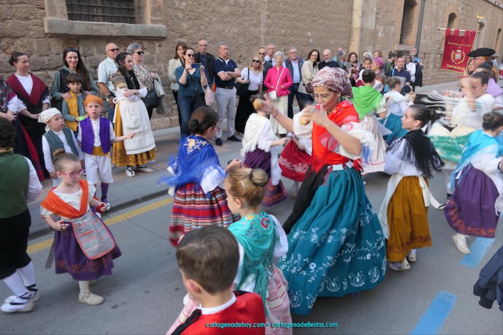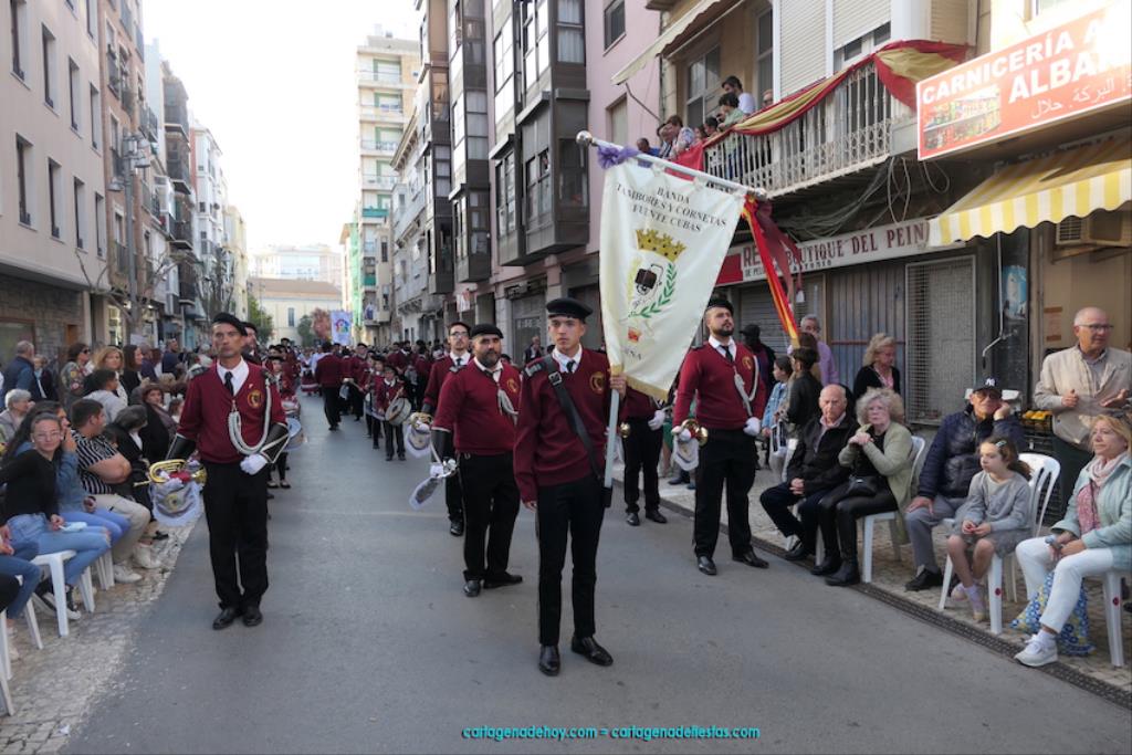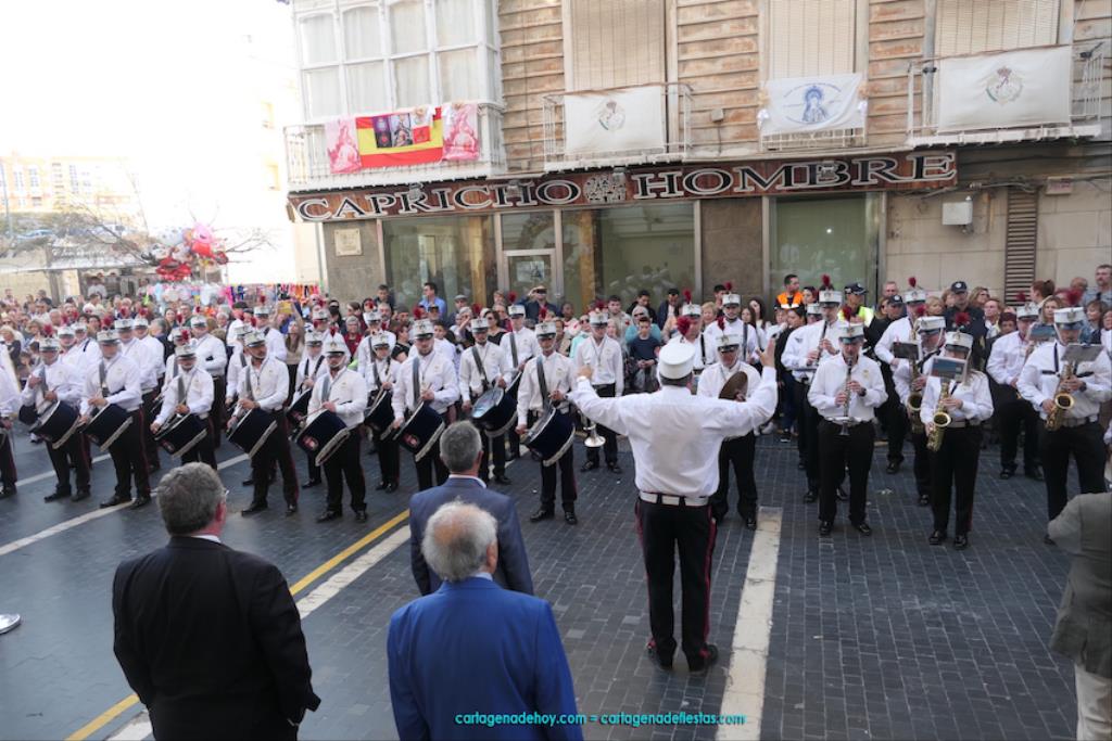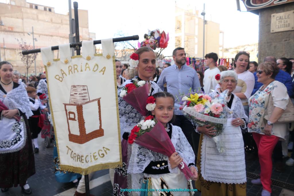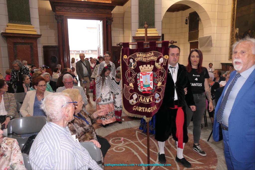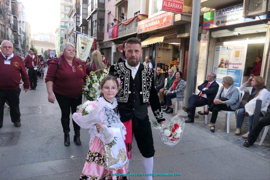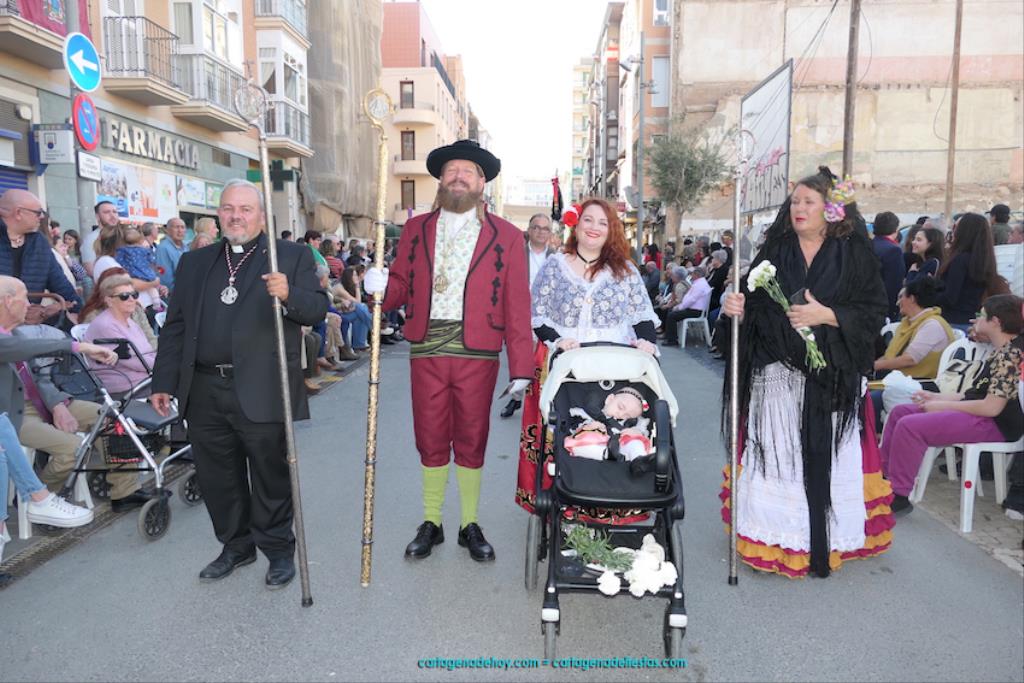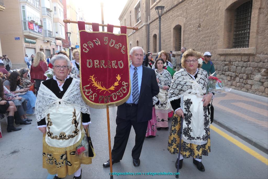 Isabel es un ejemplo de la devoción que existe hacia la patrona y a buen seguro que habrá más casos similares. Así, por ejemplo, Ana de Haro, presidenta vecinal del Ensanche-Almarjal, supera las cuatro décadas de ofrendas. En la lado opuesto hemos podido ver a muchos bebés con escasas semanas, meses o años de vida, y entre medio, un amplio ramillete de edades.Han sido cincuenta los grupos que ha protagonizado el mayor desfile popular de Cartagena cada año, que son los que aparecen en la relación adjunta más el partido 'Sí Cartagena'. También figura MC, con los ediles María José Soler y Jesús Giménez, entre otros de su formación, portando un escudo floreado de Cartagena, mientras que José López iba con la Cuarentuna. Otro candidato a alcalde, el socialista Manuel Torres, por su parte, llevaba el ancla que abría paso al grupo de vecinos de Santa Lucía, con amplia presencia de pescadoras. Por su parte, el gobierno municipal ha sido el segundo grupo que ha efectuado la ofrenda, con la alcaldesa luciendo típico traje cartagenero, al igual que Diego Ortega.
