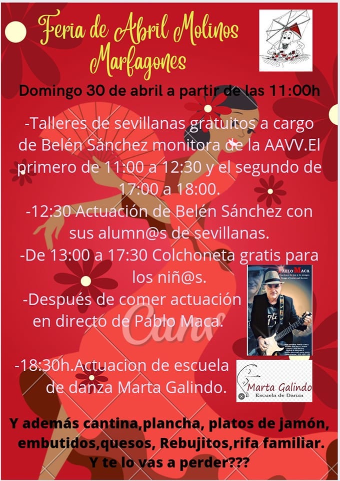 La feria de abril en el pueblo cartagenero se ha fijado para el último domingo de este mes a partir de las once horas e incluirá cantina, talleres gratuitos de sevillanas, actuaciones de baile y danza, colchonetas y la actuación en directo de Pablo Maca.