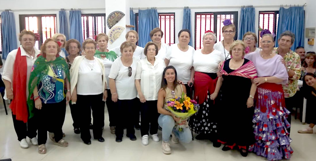 Grupo de sevillanas con la profesora Belén Sánchez