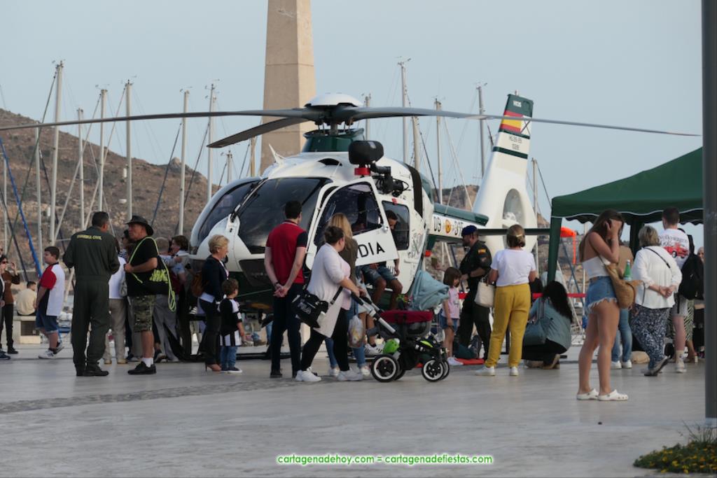 La noche fue muy completa. Hubo quienes enlazaron la visita a la exposición de la Guardia Civil en el antiguo club de regatas (con helicópteros incluidos) a la ruta floreada, que además se vio enriquecida por los montajes colocados en la ciudad con motivo del festival de arte emergente 'Mucho Más Mayo' y las grandes macetas de flores que puso la concejalía de Festejos.