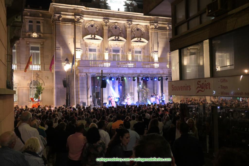 Destacar que no hubo aglomeraciones, como sí sucedía antes de la pandemia, quizás debido, en parte, a la celebración de conciertos con fuerte capacidad de atracción de público en la plaza de San Francisco. Anoche estuvo 'Raya Real' con sevillanas y rumbas que pusieron a bailar a bastantes presentes, además de un recuerdo especial a Pau Donés (Jarabe de palo), ofreciendo su versión de 'La Flaca'.