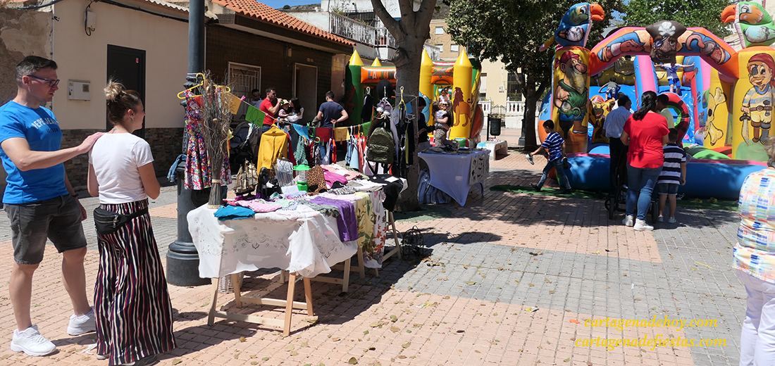 El primer fin de semana de mayo fue para la cruz de mayo en Alumbres y el segundo, para la 'Fiesta de la primavera 2023'. Comenzó el viernes con una exposición de trajes de cartageneran y fotos antiguas, pero por la tarde-noche y a mitad de jornada del sábado apareció la lluvia, lo que trastocó el programa, que inicialmente presentaba en la segunda jornada animación infantil, chocolatada con bollos, escuela de baile, música de dj y rifa familiar. El domingo regresó la normalidad y se pudo desarrollar bajo la luz solar el variado mercadillo.