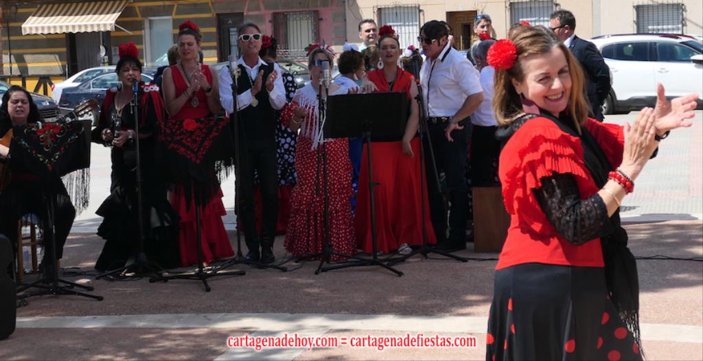 Después, más voces del grupo rociego y bailes con sabor andaluz, a los que se incorporó el baile de sevillanas del grupo de Belén Sánchez. Una rifa familiar puso fin a una jornada que contó con la colaboración del Ayuntamiento, de las asociación de vecinos y del club de mayores. Entre los visitantes de la jornada pudimos ver a Noelia Arroyo, alcaldesa y candidata del PP; Ana Belén Castejón, vicealcaldesa y candidata de Sí Cartagena; y Salvador Lara, candidato de Partido Cartagenerista.