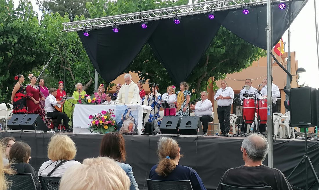 La tarde comenzó con una misa al aire libre con acompañamiento de 'Aires del rocío', para por la noche coger el protagonismo la copla de María José Lorente y las canciones pop de José Carioca.
