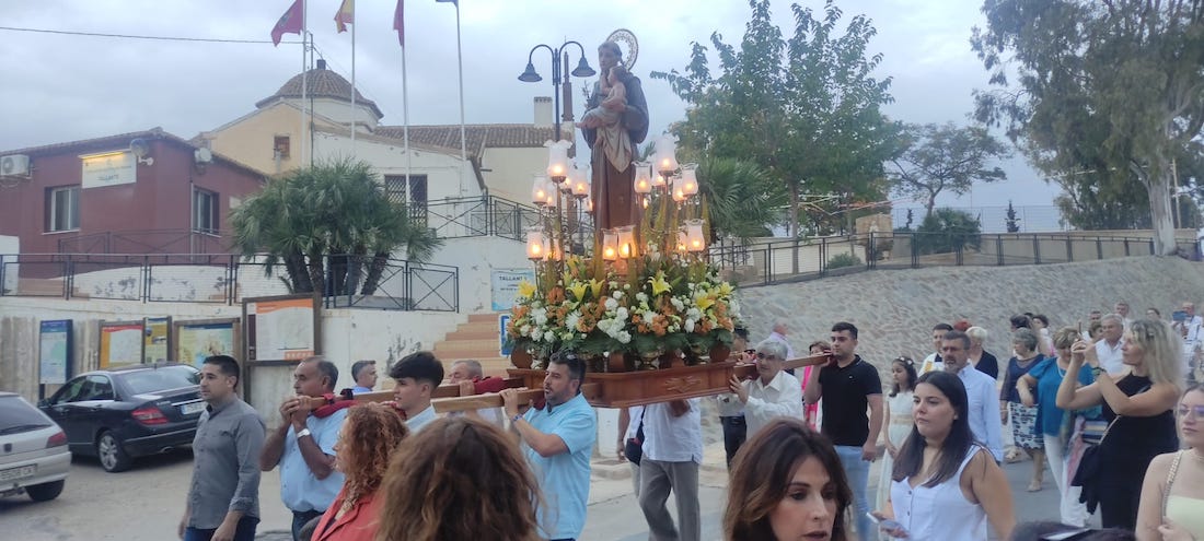 El penúltimo día fue para una ruta por la rambla de El Cañar y noche de baile con 'Duetto', además de un castillo de fuegos artificiales com preludio al día de San Antonio, con despertar con el sonido de campañas y cochetes, celebrando a las 13 horas una misa a la que sucedió la degustación de vemú para los asistentes. Por la tarde, la procesión con la imagen de patrón llevada a hombros y siendo arropada por las calles del pueblo por varias decenas de devotos, siendo la agrupación musical 'Cartagena 1990' la que protagonizó el acompañamiento musical.