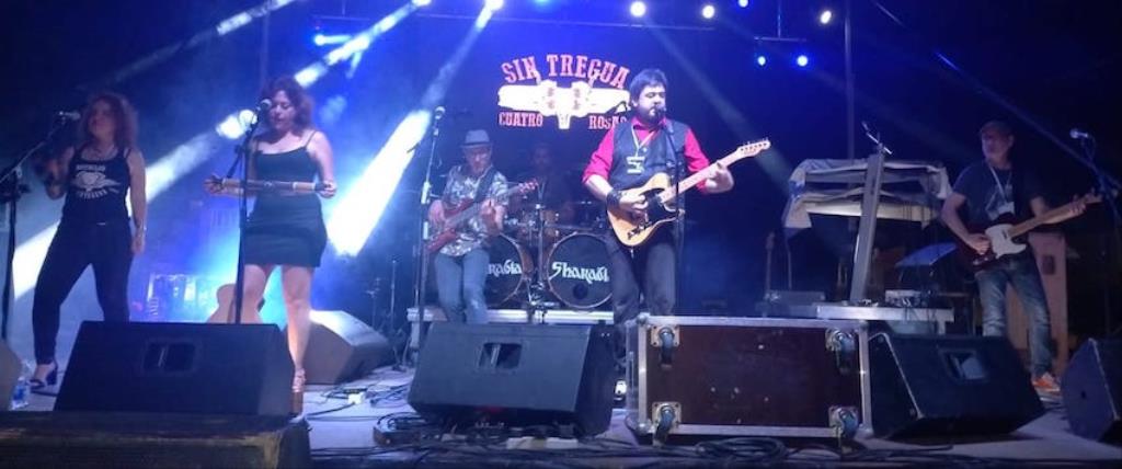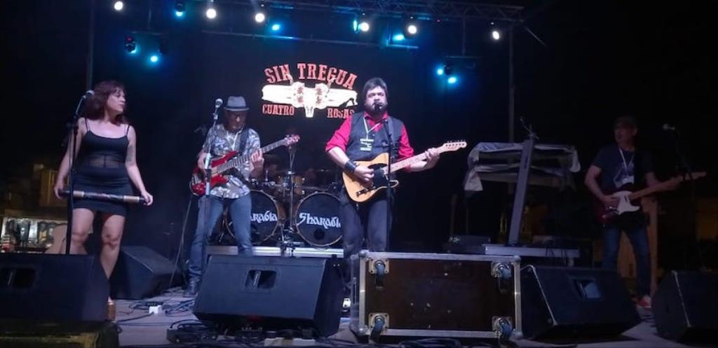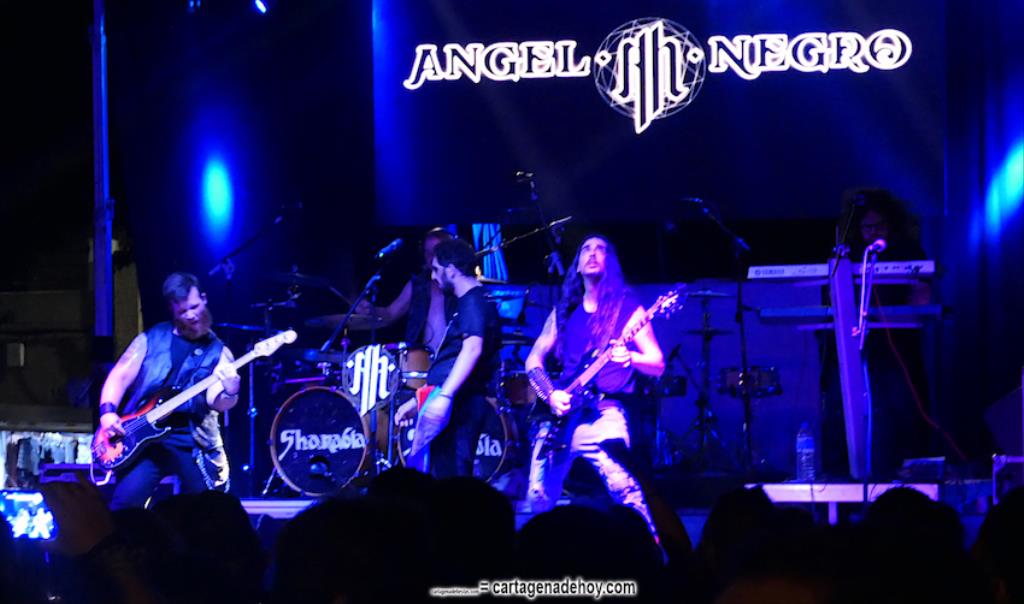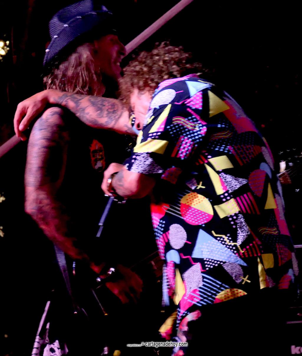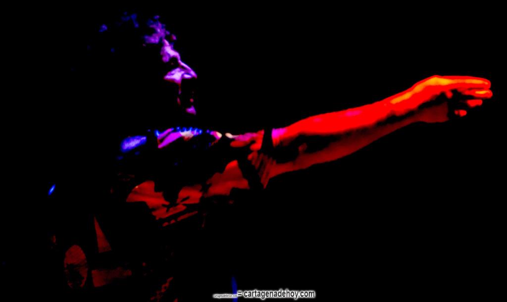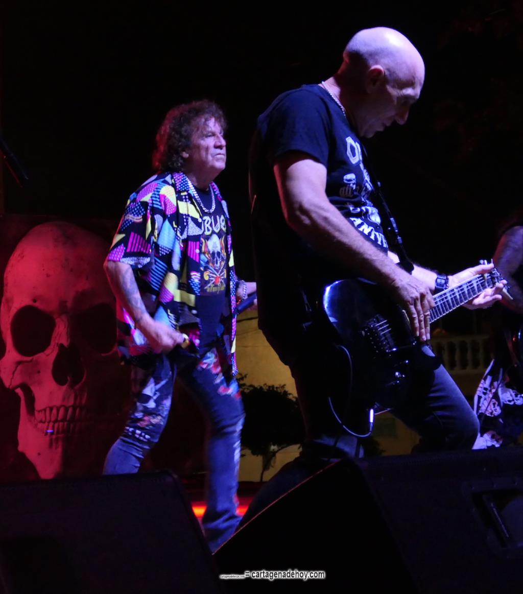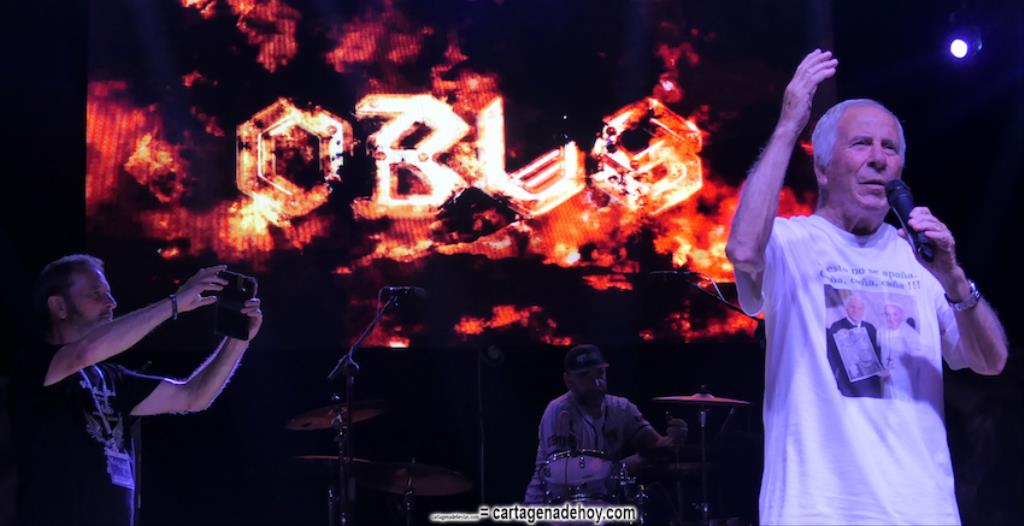 Vamos al capítulo musical, que comenzó sobre las diez y media de la noche y alcanzó las cuatro de una madrugada en la que, poco después, regresó la lluvia a Cartagena. Estupendas actuaciones de ‘Sin tregua’, ‘Sharabia’ y ‘Ángel Negro’, que también tienen a sus fieles conquistados merced a su buenhacer y calidad sonora, dentro de las variantes del rock que ofrecieron. Minutos antes de las dos de la madrugada apareció el cuarteto de ‘Obús’, siendo el último en subir al escenario un Fortu con camisa colorida, lo que contrastó en un ambiente donde la mayoría lucían las tradicionales camisetas negras. Comenzó con “Necesito más” y no faltó en su repertorio el súperconocido ‘Va a estallar el obús’ ni el ‘Dinero, dinero’ o el ‘Que te jodan’. Maestro sobre las tablas, fue puntal en mantener el júbilo entre el público. “¡¿Dónde estamos?!”, preguntaba a gritos. Unos decían que en Cartagena y otros que en Vista Alegre. Pues no… “¡Estamos en un concierto de rock…, arriba las manos!”.