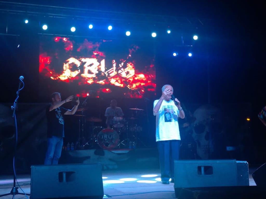 A mitad del concierto de ‘Obús’, Antonio Bermejo, quien tiene 81 años de edad, subió al escenario apoyado en José Ros, lanzando enseguida su popular grito de ‘fiesta, fiesta, fiesta’, que otras veces ha sido ‘guerra, guerra, guerra’, cada cosa en su lugar y su momento. Los más de tres mil espectadores comenzaron coreando el nombre de ‘¡Antonio!’, quien siguió crecido y anunció que iba a cantar en ese escenario en el que estaban leyendas del rock español. El buen cura se arrancó con el ‘Porrompompero’, lo que hizo gracia al público, que enseguida se sumó de coro, mientras que Fortu y sus compañeros de banda se cruzaron miradas de sorpresa, pero enseguida sonrieron y terminaron como cómplices de Antonio, quien después siguió con ‘¡María Cristina te quiere gobernar…!’ y otras canciones veraniegas. Cuando acabó entre ovaciones, se acercó Fortu y le hizo la señal de la cruz (presinarse), haciendo lo mismo el cantante, quien segundos después decía con admiración: “¡Lo que se ha perdido mi madre!”. Nunca vivió algo así y dudamos que vuelva a repetirlo.