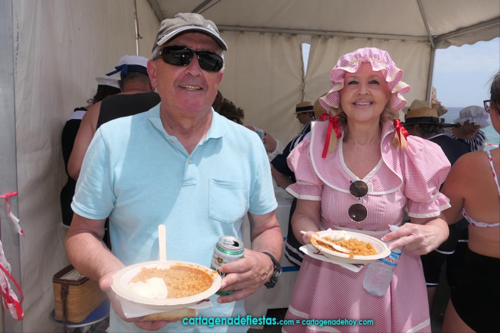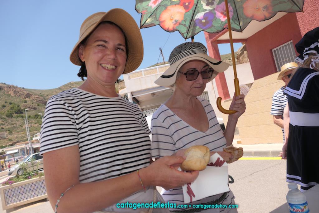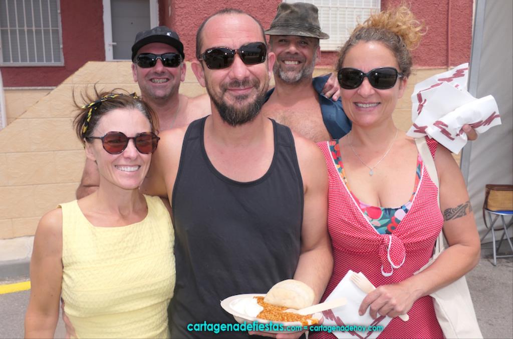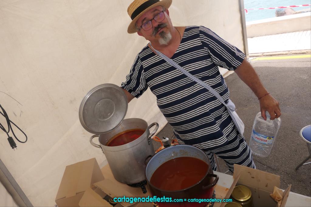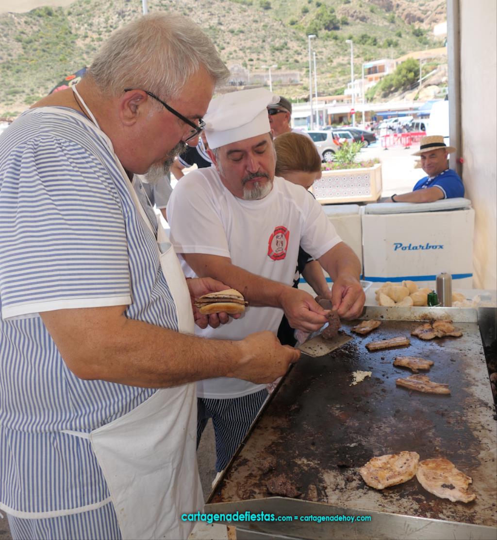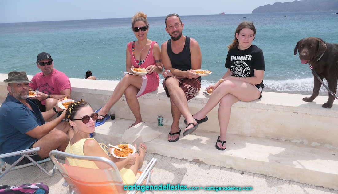 El sábado hubo 'pepitos modernistas' y el domingo tocó el turno al caldero elaborado por José Antonio Martínez 'El Kachi', presidente de la Asociación Cultural Modernistas de Cartagena de Levante, organizadores de las jornadas en colaboración con la Asociación de Vecinos de El Portús y el Ayuntamiento de Cartagena. Se sirvieron en una carpa habilitada por cantina y cocina a precio módico para potenciar el ambiente de estas jornadas. También se saborearon las rosquillas que días atrás también aparecieron en la presencia de los modernistas en el televisivo 'Ailoviu' y, dado el calor, no faltaron los refrescantes helados.