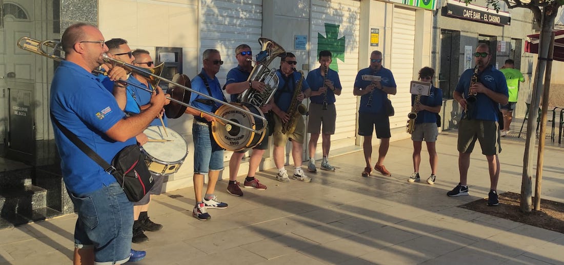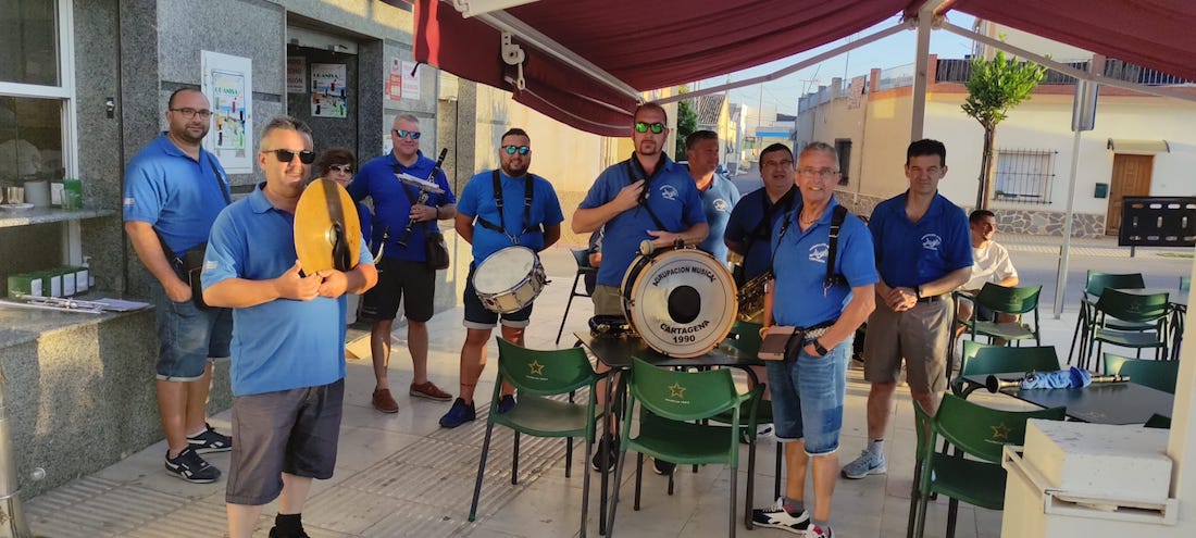A las siete de esta mañana comenzó la actividad del día del patrón con la animación de la música de la Agrupación Musical ‘Cartagena 1990’ en la recogida de la corte de honor, que ha recorrido el pueblo con el espíritu festero que merece esta jornada, en la que habrá misa, procesión, noche de migas y la actuación de la orquesta ‘Vendetta Project’.
