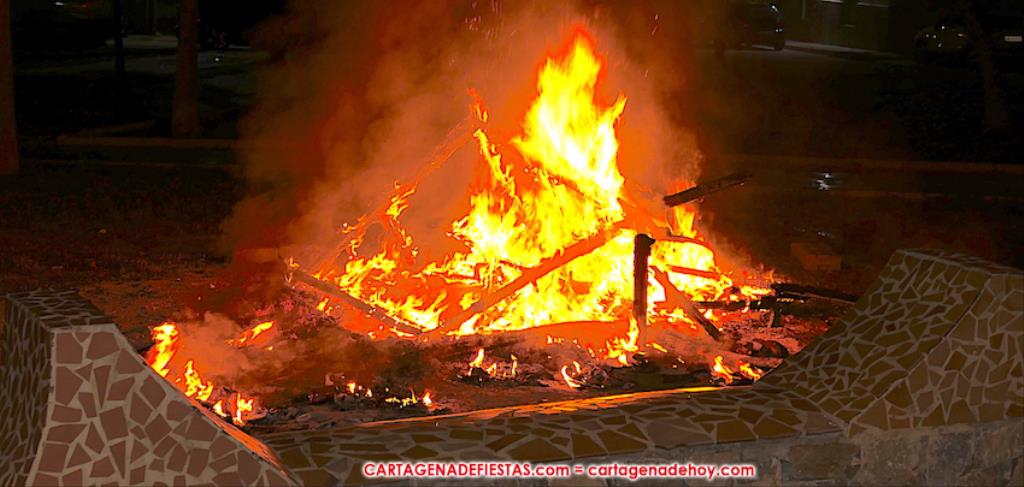 Tras una cena de convivencia de vecinos y visitantes en la plaza de la Marina Española (rodeada por el sonido permanente de los petardos que explotaban los chavales en el entorno), y cuando en el campanario de la iglesia de Santa Lucía comenzaron a sonar las campanadas de la medianoche, la hogareta recibió la primera llama de manos de Manuel Torres García, nuevo concejal del Ayuntamiento y secretario general del PSOE en Cartagena, pero en este caso como persona muy involucrada con el movimiento vecinal de su pueblo natal.
