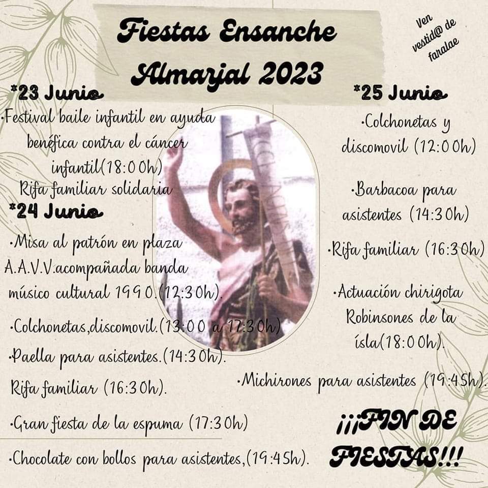 Las fiestas comenzaron el viernes y culminan hoy, habiendo acogido diversas propuestas de diversión (y refrescantes) para los niños, misa al patrón (San Juan) en la plaza y diversos alicientes gastronómcos, como arroz, chocolate con bollos, michirones y barbacoa. Ha organizado la asociación de vecinos que preside Ana de Haro. En la foto, la paellera en acción y la animación musical de la Agrupación Musical ‘Cartagena 1990’.