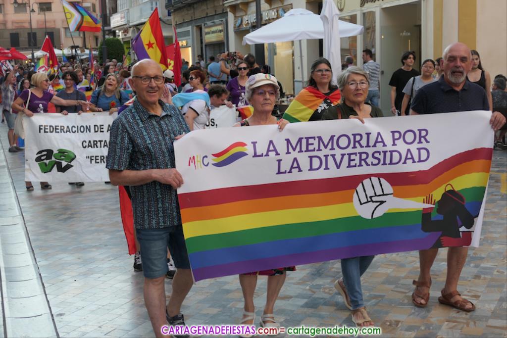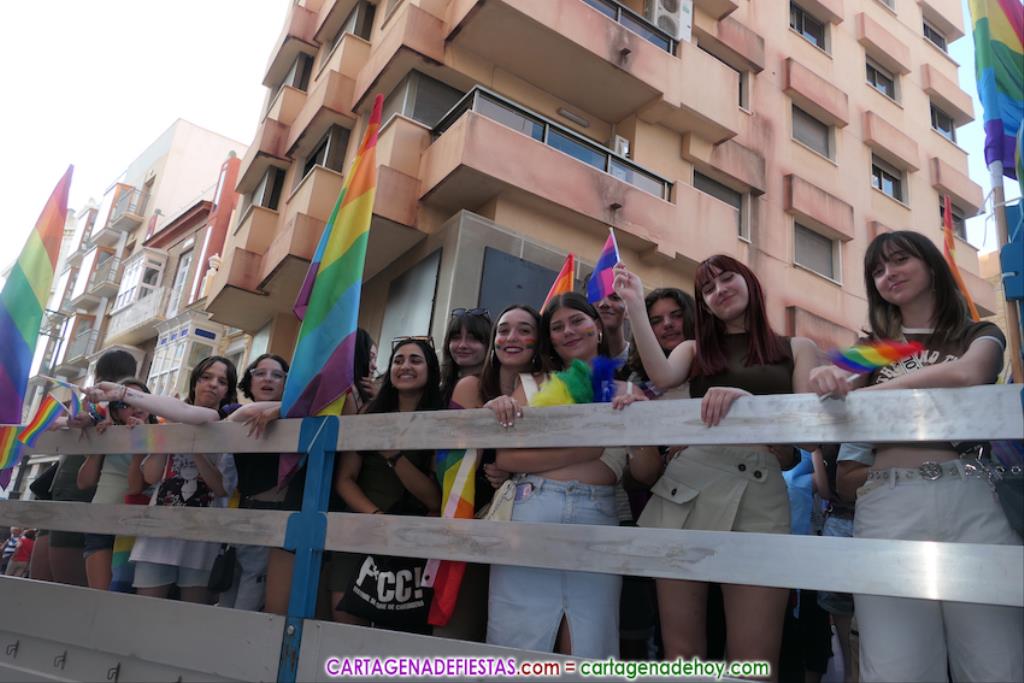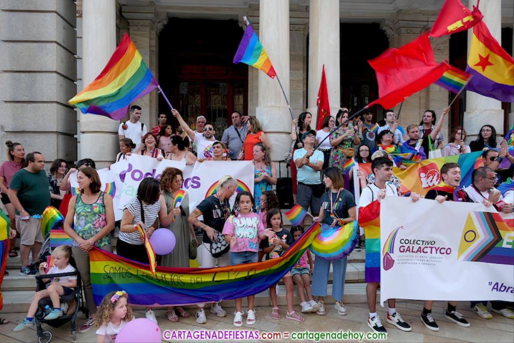 ‘Familias LGTBIQ+. Abrazando la Diversidad Familiar'. Con este lema centrado en núcleos familiares surgidos de núcleos familiares no típicos se puso en marcha el colorido desfile cartagenero para evitar que suceda como en Italia, donde la Fiscalía ha pedido formalmente la rectificación de 33 certificados de nacimiento solicitados por parejas de madres y registrados a partir de 2017 y la retirada de los apellidos de la madre no gestante. En nuestro caso, en España se lucha por evitar que esa medida llegue y que todas las familias mantengan sus plenos derechos como tales. "Parejas de mujeres y de hombres están sufriendo estigmatización, no debemos permitirlo", proclaman.