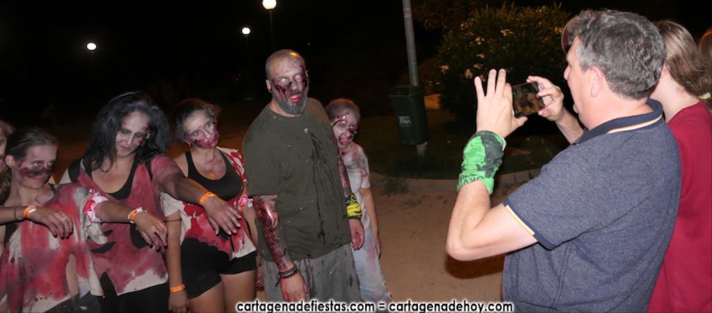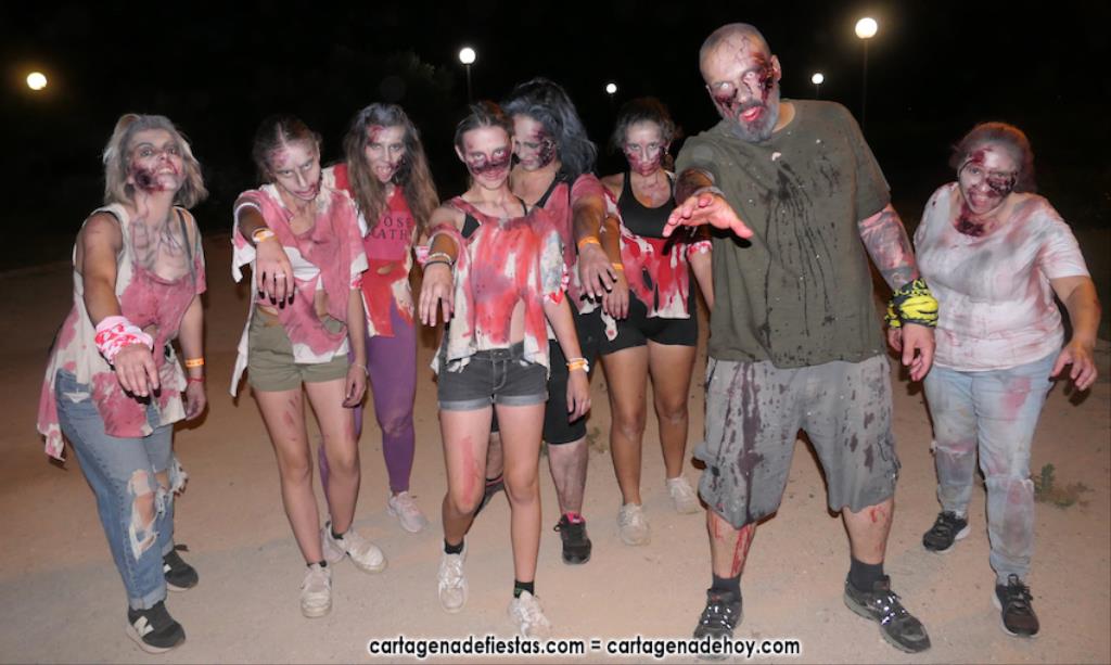 La joven barriada cartagenera ha tardado 34 años desde su origen en recibir un contingente zombi. Ha sido fugaz, pues apenas han estado seis horas, pero han dejado buen recuerdo en lo que fue una gran partida sobre un tablero que abarcó casi todo el Polígono Santa Ana, con especial incidencia en el el gran parque de Los Exploradores, donde se potenciaban con la oscuridad las escenas de ataques de los 'muertos vivientes' sobre los que luchaban por 'sobrevivir'. Todo este área de brotes zombis fue bautizada para la ocasión como 'Nueva Cartago'.