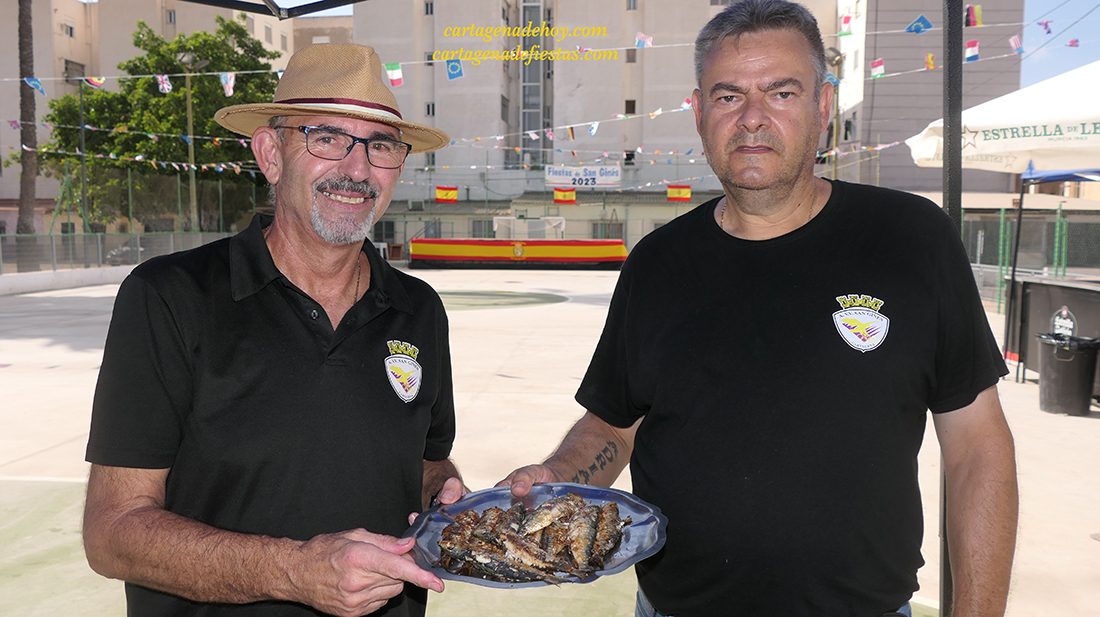 La asociación de vecinos de la barriada obsequia esta mañana a los visitantes del recinto festero del parque García Pagán con 60 kilos de sardinas a la plancha, que después enlazará con arroz (también gratuito) para unas trescientas personas.