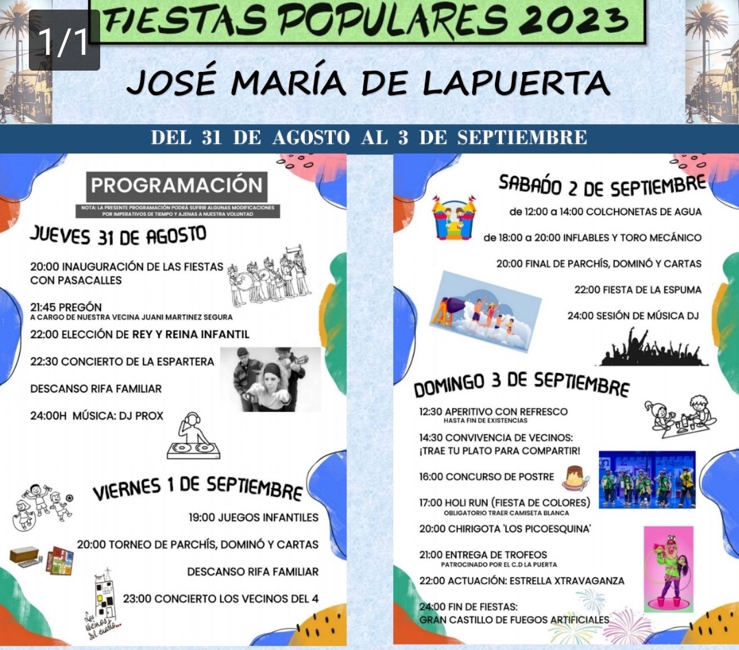 Vecina de la barriada, será la encargada este jueves de abrir unos festejos populares que se desarrollarán hasta el domingo con atractivos como una fiesta de colores y las actuaciones de 'La Espartera', 'Los vecinos del cuarto', 'Los picoesquina' y de 'Estrella Xtravaganza', quien ha estado en los programas de televisión 'Drag Race España' y 'Gran Hotel de las reinas'.