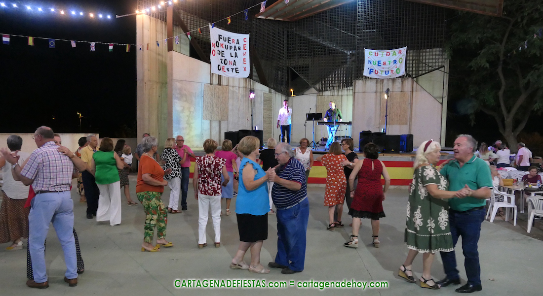 La noche, que reunió a varios centenares de personas, dio para bastante más, tanto para 'luchar' con pancartas y firmas contra la 'okupación', como definen a la amenaza de que se instale una mina en el oeste cartagenero, como para bailar con 'Dúo Gala'. Muy buenos en su interpretación de canciones que animaban a unos a moverse por la pista mientras otros mantenían animadas tertulias que potencian las relaciones entre vecinos y amigos.