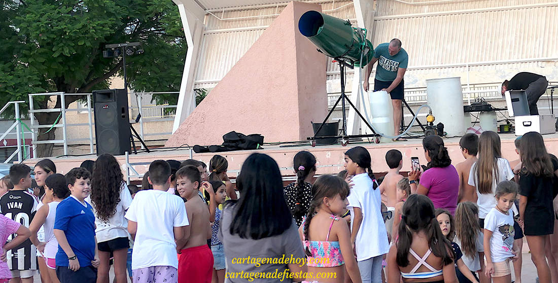 La fiesta de la espuma, que comenzó con algo más de hora y media de retraso sobre el horario anunciado por retraso en la llegada de la empresa contratada, tuvo dos capítulos, uno para niños y otra para jóvenes y adultos.