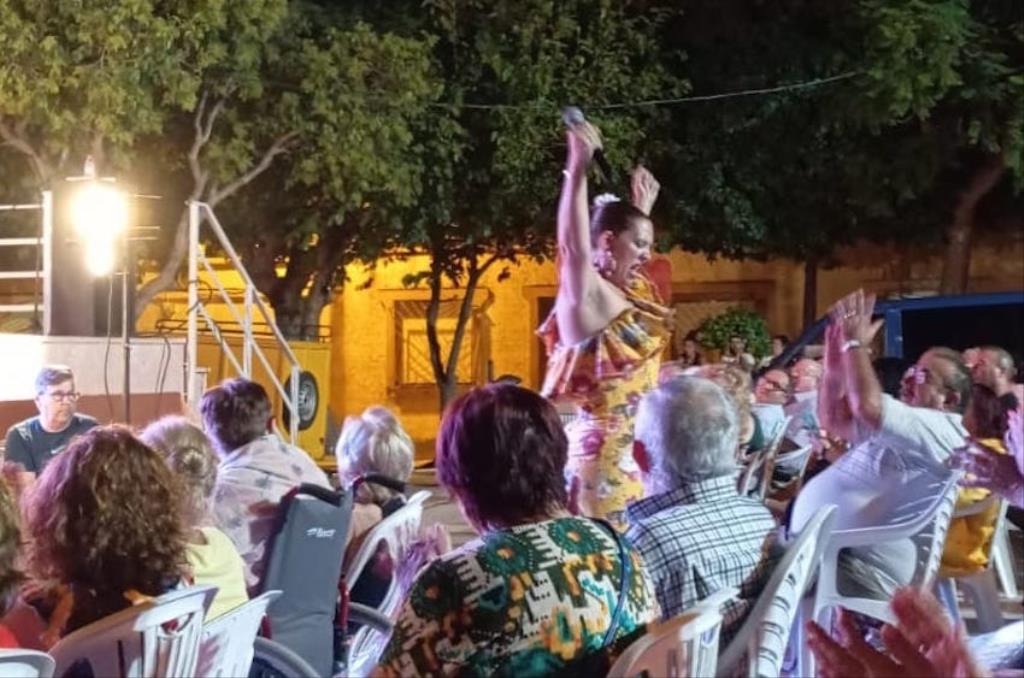 La actuación central fue la de Lolita Torres, quien estuvo la primera vez en el barrio dolorense antes de la pandemia y que regresaba con parte de su elenco de muñecos dispuesta a arrancar muchas sonrisas, lo que consiguió con el matrimonio de ancianos formado por Ginesa y Lisardo, el 'chulapo' de Bruno y el bebé Carlitos, además de conversar con una pizarra, como algunos ya conocía por su actuación en el televisivo 'Go Talent'. Para acabar, invitó a subir a tres espectadores, a los que le puso voz en comentarios muy graciosos, terminando con la complicada puesta en escena de ofrecer una canción a tres voces, todas ellas saliendo del interior de Lolita Torres.