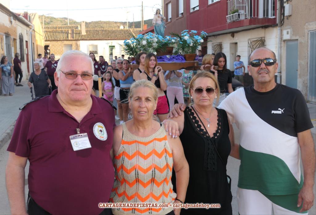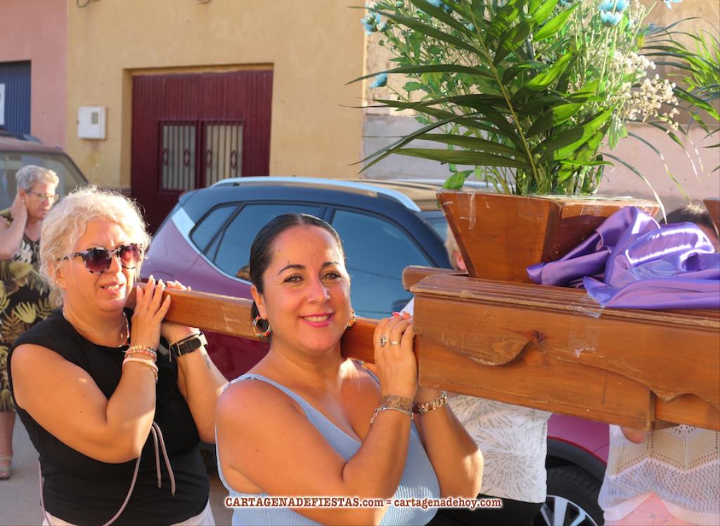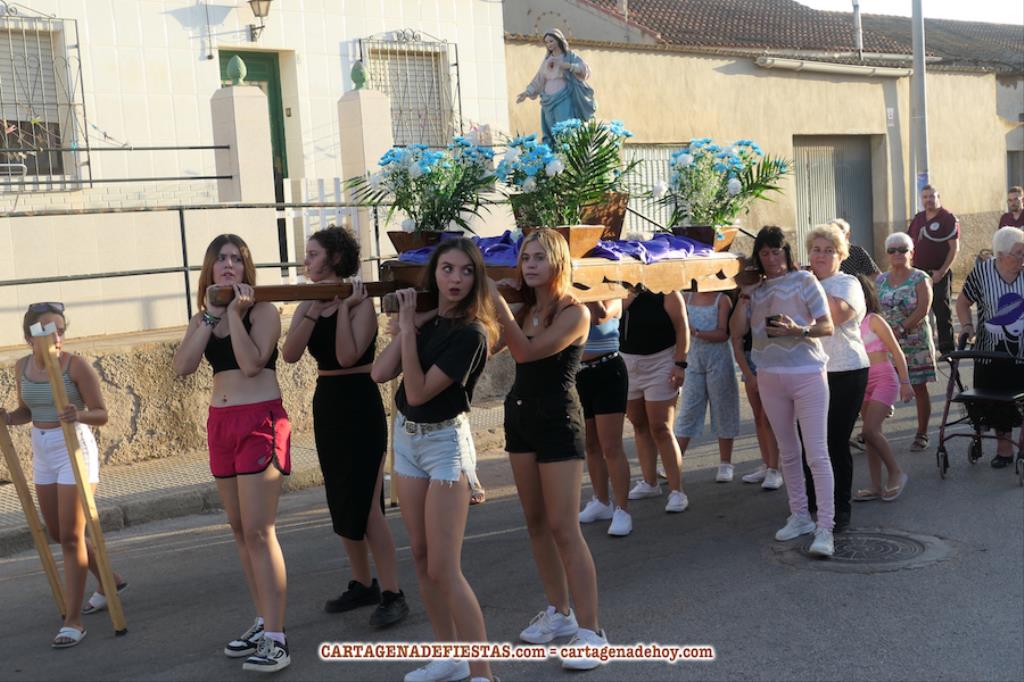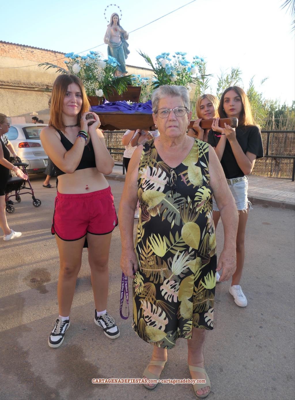 La imagen de María, que fue tallada hace más de un siglo y que fue donada por una familia, recorrió las calles del pequeño pueblo cartagenero en una tarde de fiestas que culminó con chocolatada. Hoy, guerra de tartas y un gran arroz para consumir de forma gratuita.