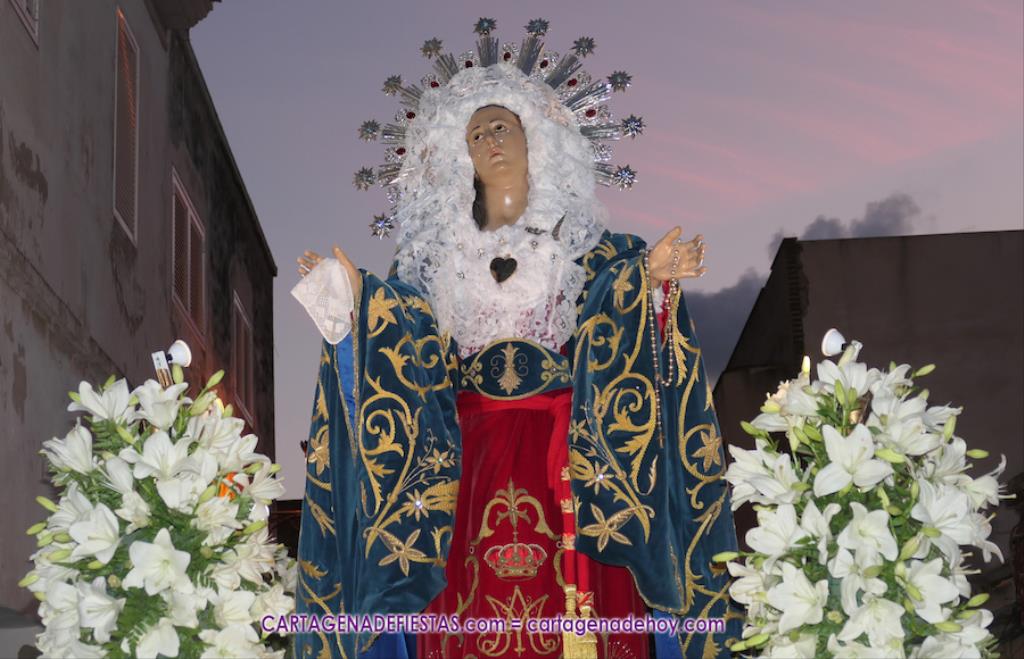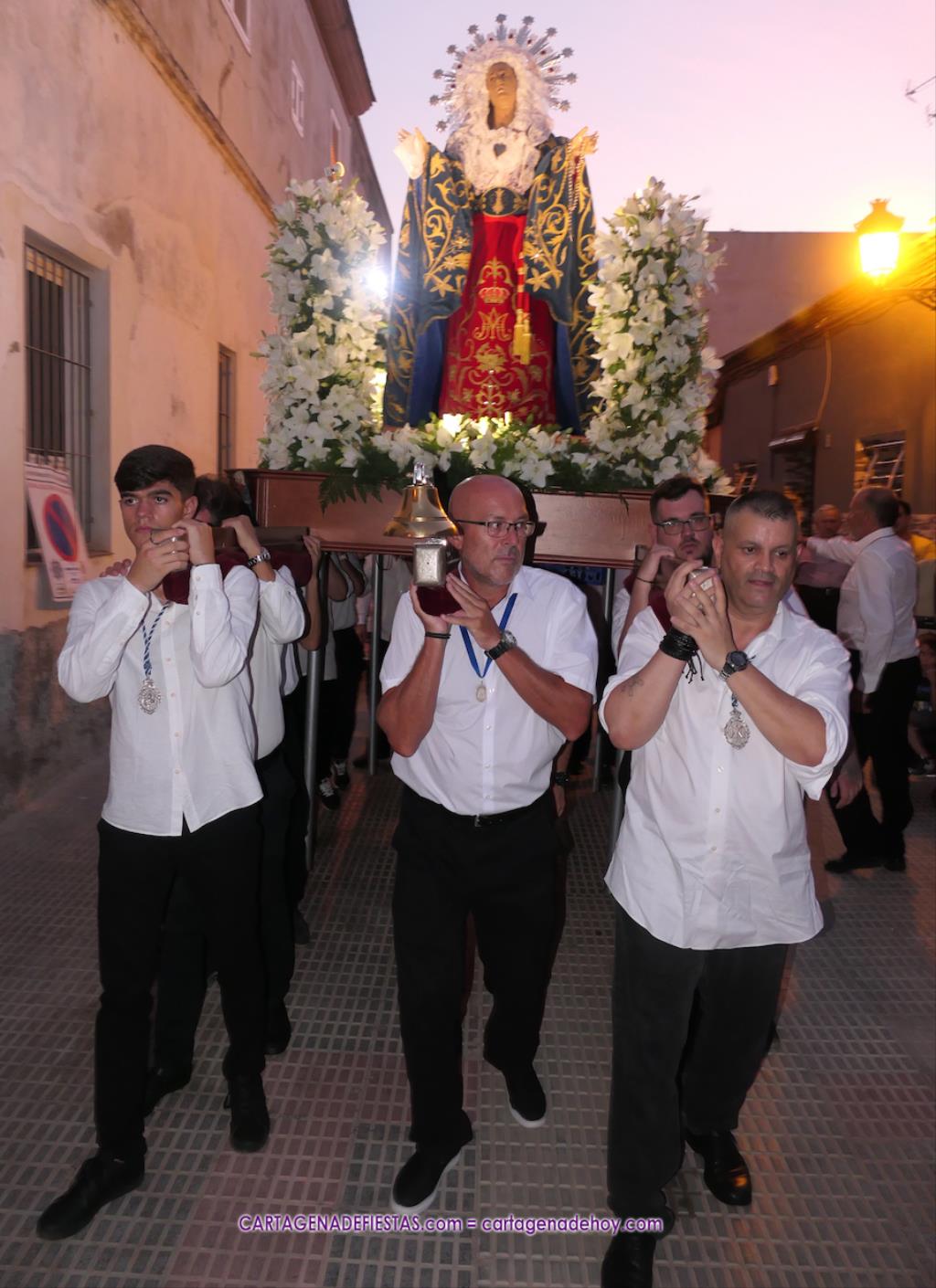 La patrona del barrio de Los Dolores protagonizó el cierre de la semana de las fiestas patronales con una procesión que contó con un buen acompañamiento y en el que se estrenaron banderines.