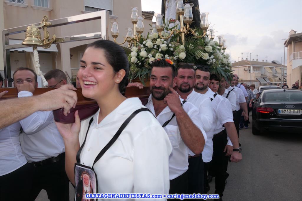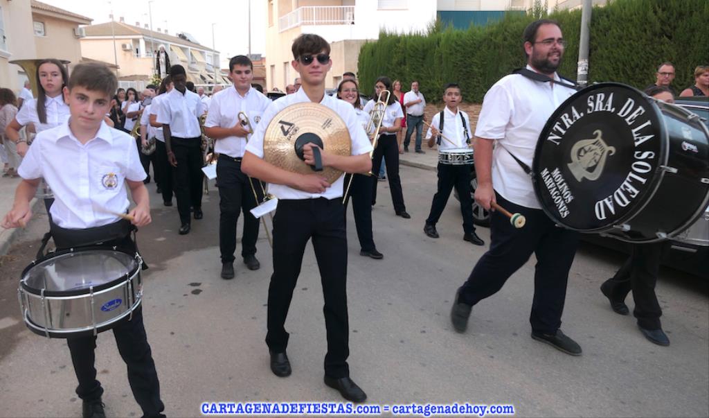 Vayamos ahora la procesión, donde el grupo de 16 costaleros llevó a la patrona en una comitiva en cuyos primeros lugares lucían los tradicionales hombres con vestuario de faena molinero y las mujeres de bonitos y coloridos ropajes de época. La verdad es que dan mucho colorido a este cortejo. El capítulo musical corresponde a la agrupación musical local, que lleva el nombre de la patrona. También destacar la presencia de varias decenas de devotos que han estado con la imagen desde la salida hasta la jubilosa recogida, en la que han sonado los himnos de Molinos Marfagones y de España, además de ser elevado el trono '¡al cielo!'. Después, con el baile amenizado por el grupo 'Piku' en el recinto festero, las fiestas patronales han puesto del broche a una buena y revitalizada edición.