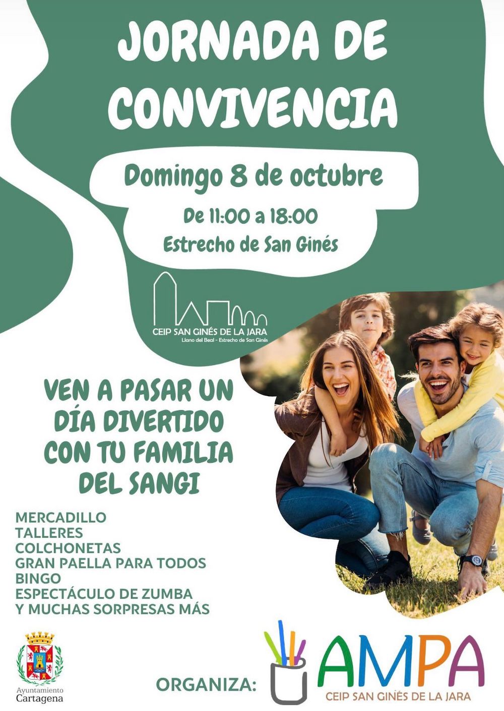 La asociación de madres y padres del colegio de San Ginés de la Jara organiza este domingo, en el centro de 11 a 18 horas, una jornada familiar y popular con mercadillo, talleres, colchonetas, rifa familiar, zumba y, entre otras sorpresas, un gran arroz para los asistentes.