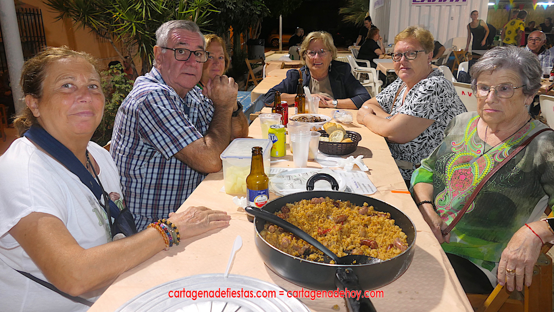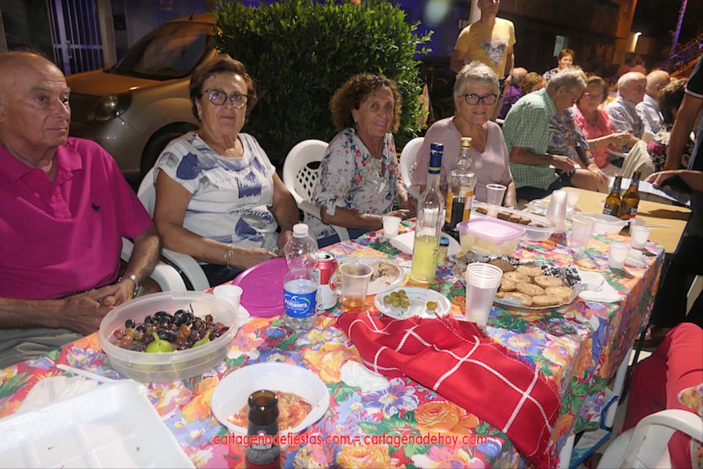 La barriada de Cartagena Norte disfrutó de un gran ambiente en la víspera de su gran día con una velada de variada gastronómica, animados bailes y una elevada presencia de vecinos. Hoy, fin de fiesta con procesión, misa de campaña y arroz gigante.