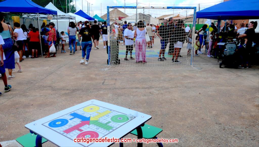 Un punto de encuentro con buenos alicientes y un buen fin. Así, de forma muy somera, se podría decir de la iniciativa del AMPA del CEIP San Ginés de la Jara de montar una jornada de convivencia con espíritu familiar y con alicientes como un mercadillo, talleres, colchonetas, rifa familiar, espectáculos de baile (grupo 'Meteorito' de El Algar) y zumba (Lolo) y, entre otros, un arroz para unas quinientas personas.