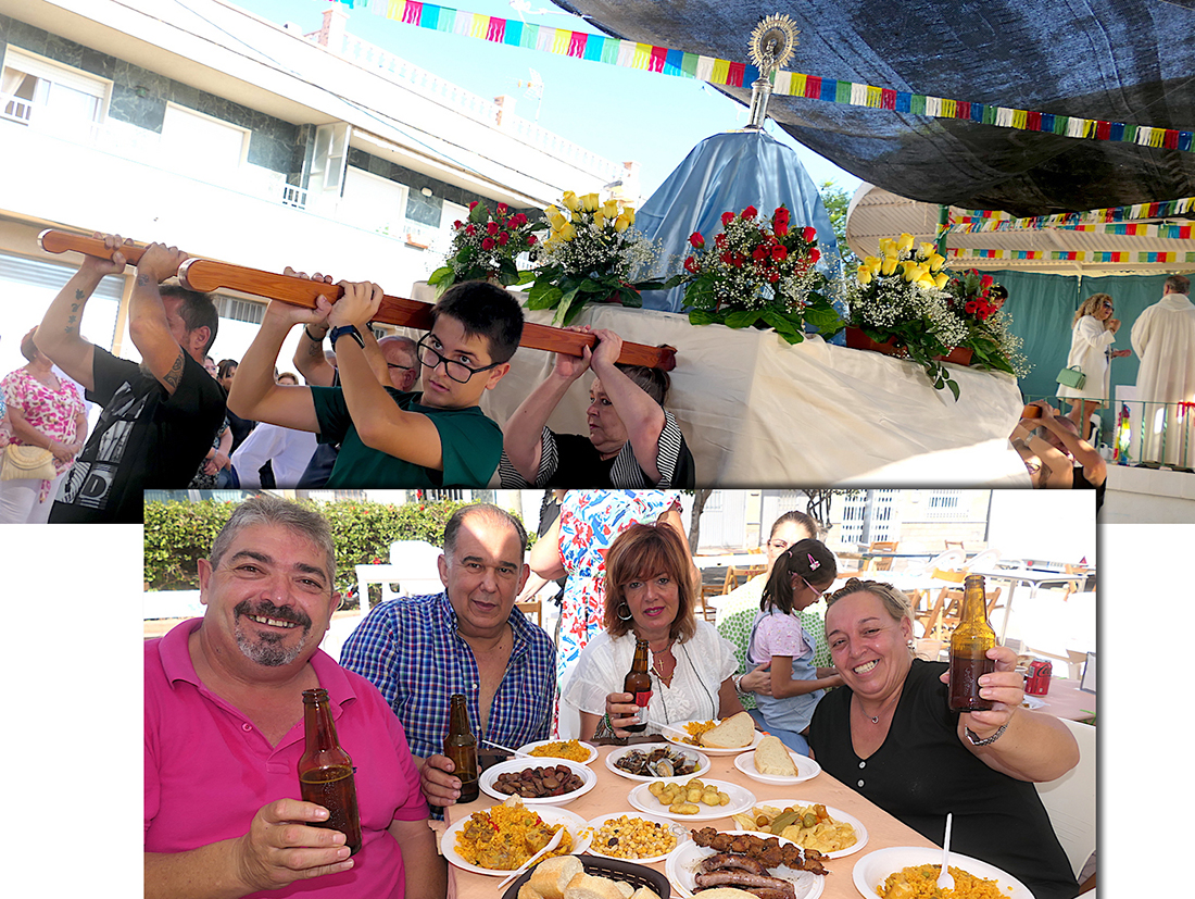 La Virgen del Pilar salió en procesión por las calles de la Barriada de Hispanoamérica por segunda ocasión, en una jornada final de las fiestas que tuvo como protagonistas gastronómicos al chocolate con churros y a un arroz gigante.