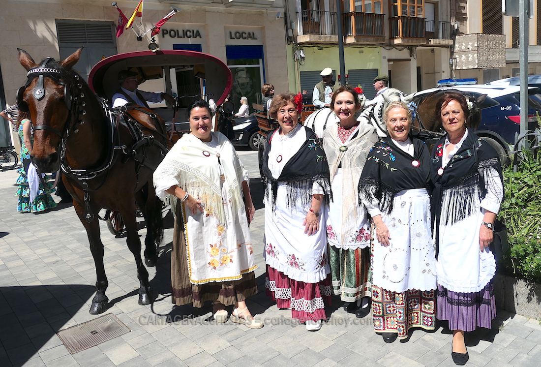 En esa 'plaza del Lago' es a donde han llegado cerca de una decena de carruajes del Club Enganche Cartagena 'Auriga' para iniciar su recorrido por la ciudad, potenciando el ambiente de esta jornada.