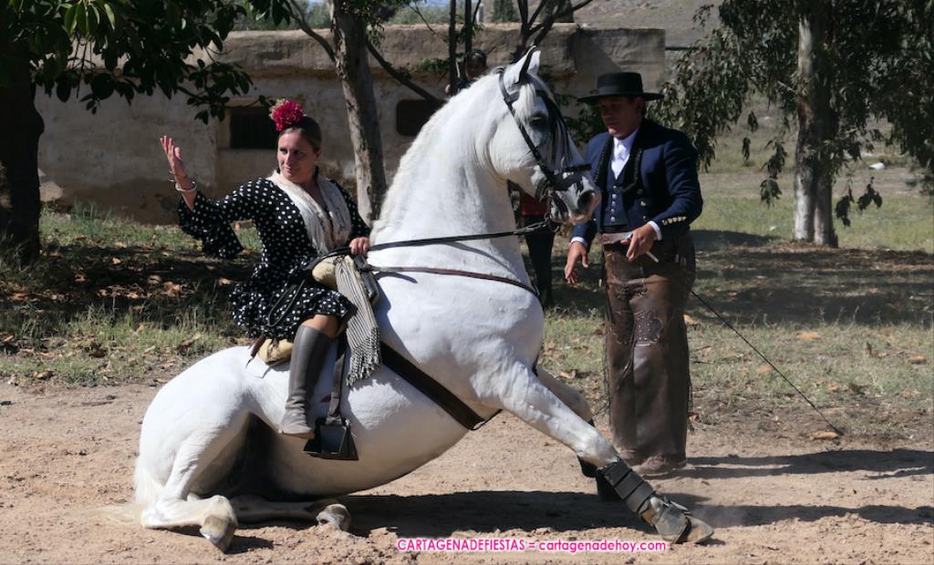 Especial protagonismo y belleza tuvo la exhibición ecuestre ofrecida por Agustín Solano con varios equinos, incluyendo un baile de uno de los caballos (dirigido por Solano) con Ana María Pascal García ante la presencia de decenas de miradas. A su conclusión, la bailaora fue obsequiada con un ramo de flores, el cual agradeció, para anunciar a continuación que se lo entregaba a su abuela, presente entre el público, con motivo del 'día de las madres'.
