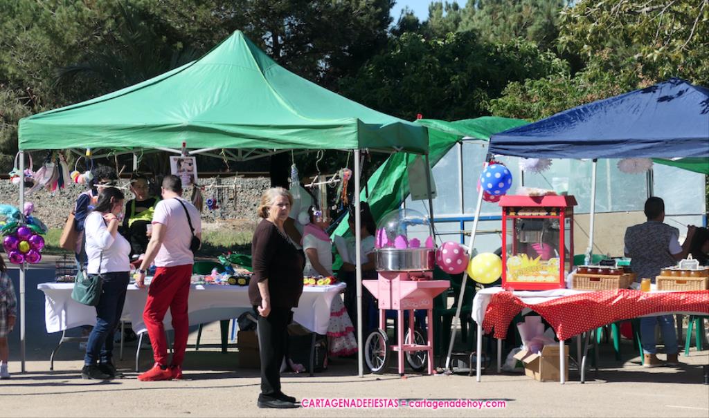 El recinto ferial fue el marco de actuación, siendo una floreada cruz montada de forma artesanal por los organizadores, la que presidía una actividad que se puso en marcha a partir de las doce horas con el grupo de baile de Laura Tardido y que incluyó ofrenda floral, cantina con precios populares, una lotería familiar y un variado mercadillo artesanal, que ofrecía hasta palomitas.