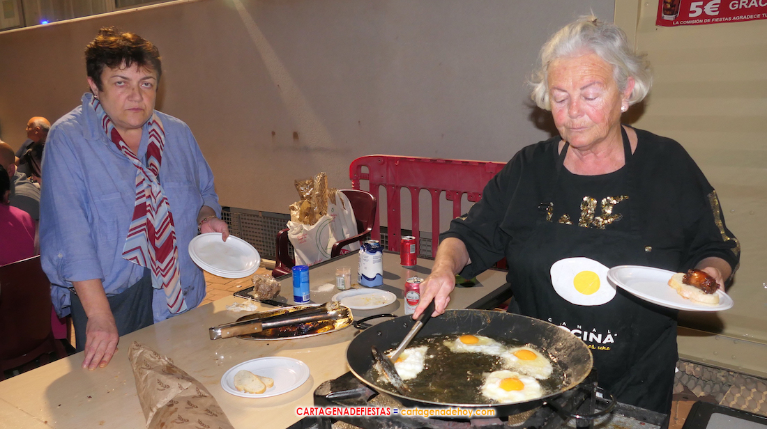 La comisión de fiestas repartió 720 huevos fritos y 45 kilos de embutido choricero de forma gratuita en una popular noche amenizada por la música de 'Acuarela'. El escenario se traslada esta noche al polígono industrial para recibir a la orquesta 'La mundial'.
