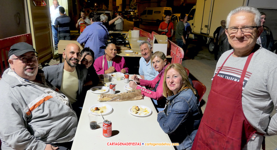 Noche ambiente, baile y apetito en Los Belones con una plaza de la Iglesia muy animada y con muchas mesas hosteleras ocupadas, además de puestos de churros, bebidas y la gran feria de atracciones. A ello se sumaba el escenario con la música de 'Acuarela', que poco a poco fue llevando gente a la pista de baile para 'mover el esqueleto'. Y luego estaban los sabrosos chorizos a la plancha con huevos fritos, que la comisión festera distribuía de forma gratuita entre los asistentes, acompañados por pan y cubierto. Todo un derroche gastronómico que sentaba muy bien y sabía mejor, como pudo dar fe el edil socialista Pencho Soto, que visitó la velada festera.