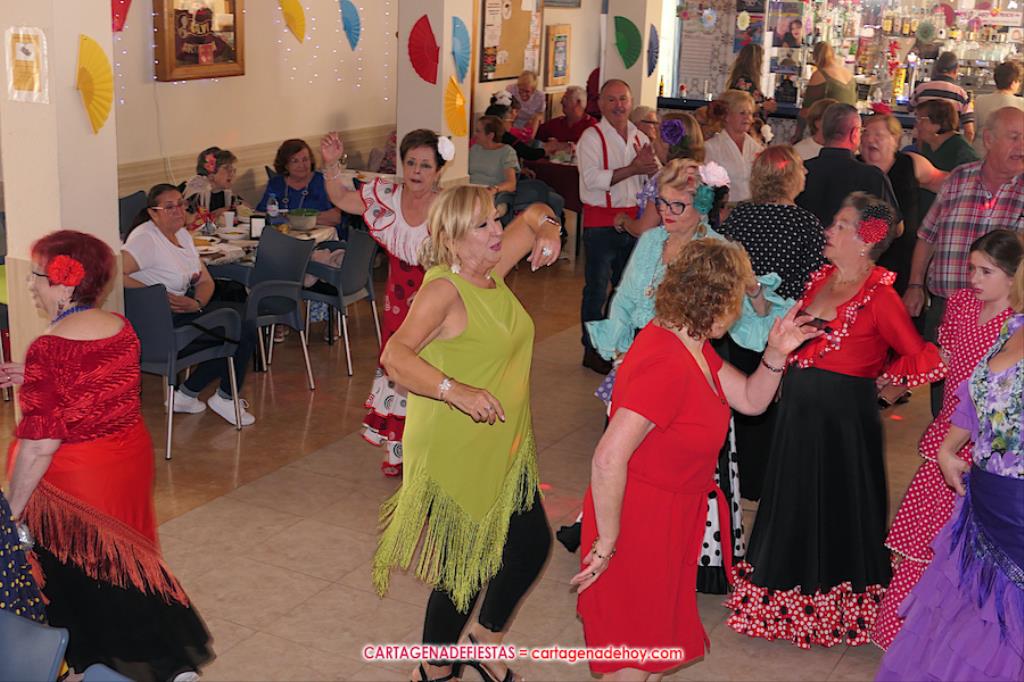 Además, de los bailes, la jornada se ha acompañado de buena gastronomía, como se podía observar en las mesas situadas en el interior y exterior del local social, con variados productos, todos con muy buena pinta, desde morcillas y embutidos a tortillas de patatas o magra con tomate.