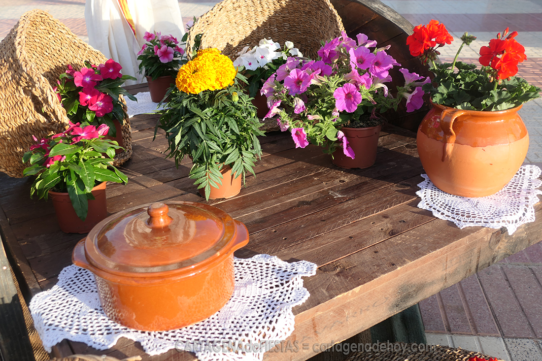 La asociación vistió diversos puntos de la plaza con elementos rocieros (muy emblemáticos y variados dentro de un montaje muy trabajado), que dieron un muy buen ambiente al lugar, enriquecido por las casetas en las que se instalaron las peñas festeras del pueblo.