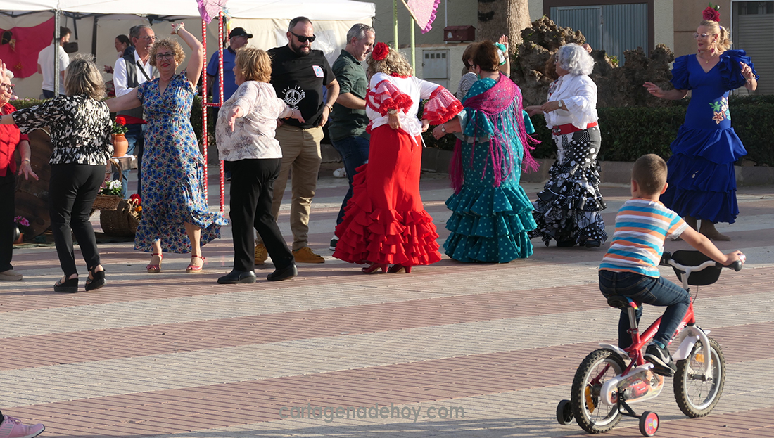 Un taller de sevillanas abrió el sábado la cruz de mayo organizada por la asociación cultural, que también ha incluido misa en la plaza de San Nicolás, concurso de arroces, rifa familiar y actuaciones del coro rociero ‘Romero y jara’ y de ‘DJ Kass’, además de convivencia de peñas y vecinos.