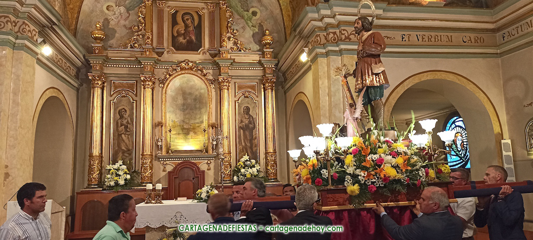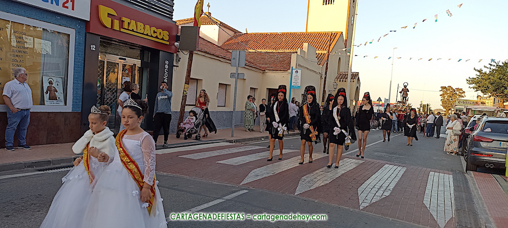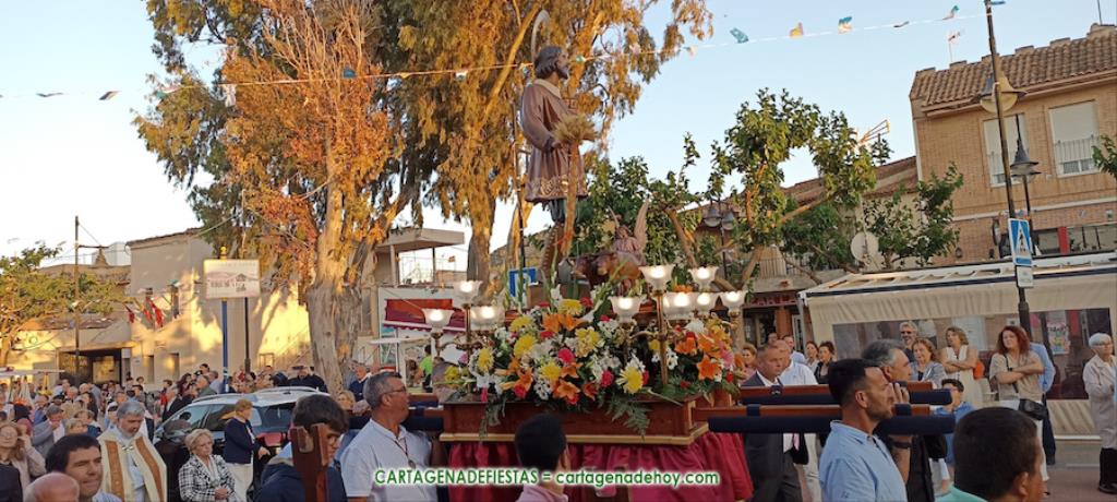 Los festejos patronales de la población más agrícola del Rincón de San Ginés, ubicada entre dos mares, han llegado a su (casi) final con la celebración del ‘paseo’ de su patrono por las calles del pueblo, después de que por la mañana tuviese lugar la misa solemne.