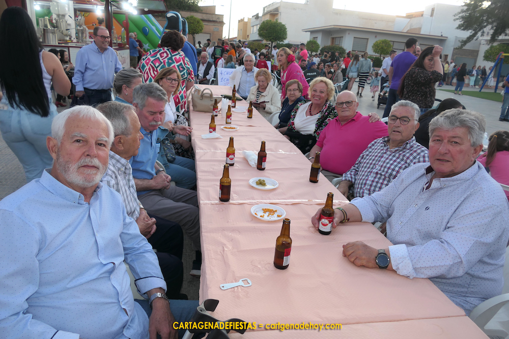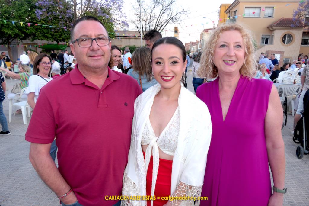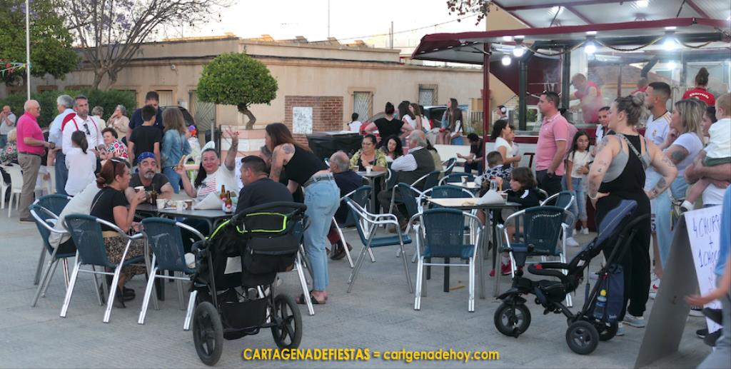 El lugar para celebrar la 'Cruz de mayo' fue la emblemática plaza de la Virgen de los Dolores, que preside uno de los mejores escenarios exterior de la periferia cartagenera y por el que fueron pasando buenas propuestas, casi sin parones, lo que facilitó el ambiente.