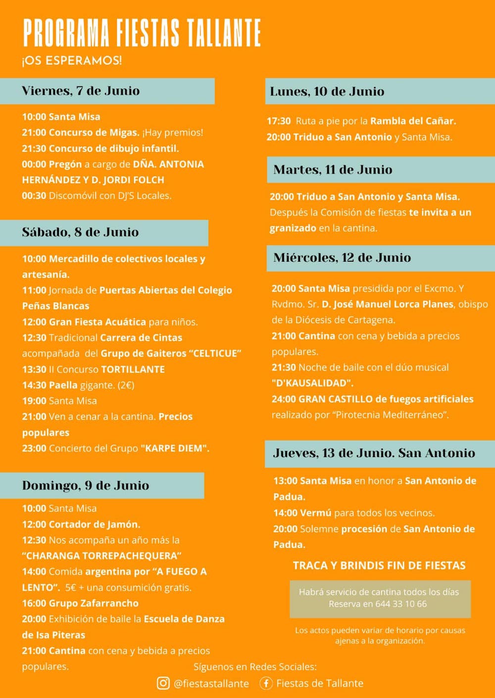 Antonia Hernández y Jordi Folch serán quienes ofrezcan el pregón de apertura esta medianoche, durante una velada que también incluye concursos de migas y de dibujo infantil, además de música con 'djs' locales. Es la puesta en marcha de un programa elaborado por la renovada comisión festera, que incluye este fin de semana fiesta acuática, carrera de cintas, concurso de tortilla, arroz, gigante, charanga, danza y actuación de 'Kar-P-Dime'. Los festejos llegarán hasta el jueves 13, día del patrón, San Antonio, que volverá a salir en procesión.