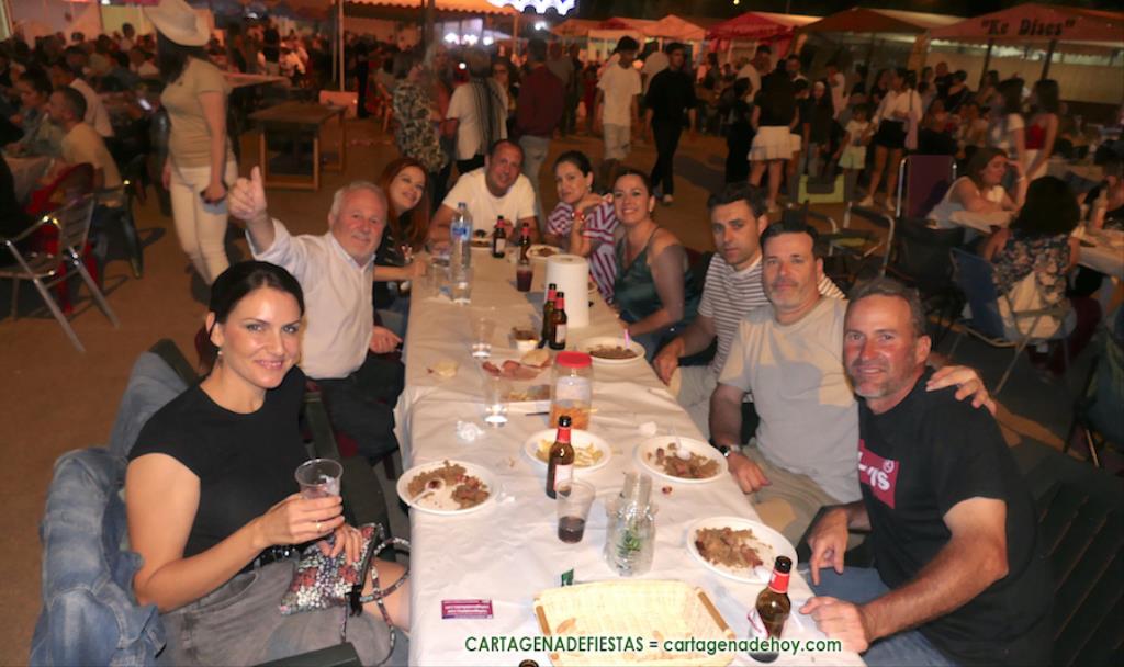 Las sartenadas de migas se despliegan entre las casetas (hay 47 peñas) y en mitad de la amplia calle, pues también se apuntan familias y grupos de amigos a elaborarlas para pasar una amena noche en torno a mesas donde la luce la riqueza gastronómica.