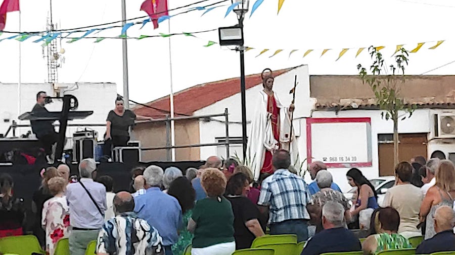 La imagen de Santiago Apóstol protagonizó la procesión por la calle Mayor del pueblo acompañada por vecinos y por la banda musical 'Quillo'-Agrupación Musical 1990. Después se celebró una misa en la plaza de la Iglesia, con el coro rociero 'Puertos de Santa Bárbara'.